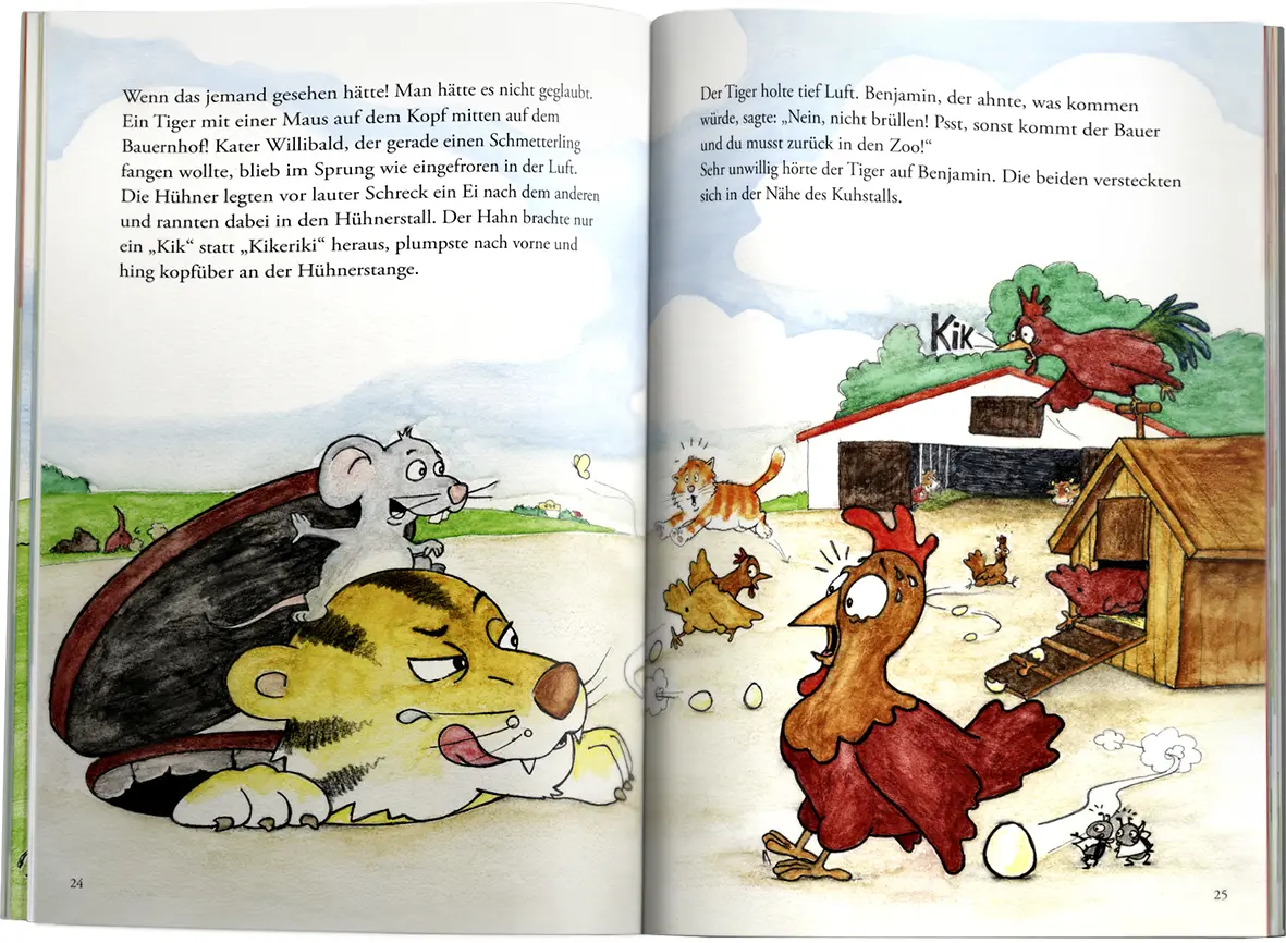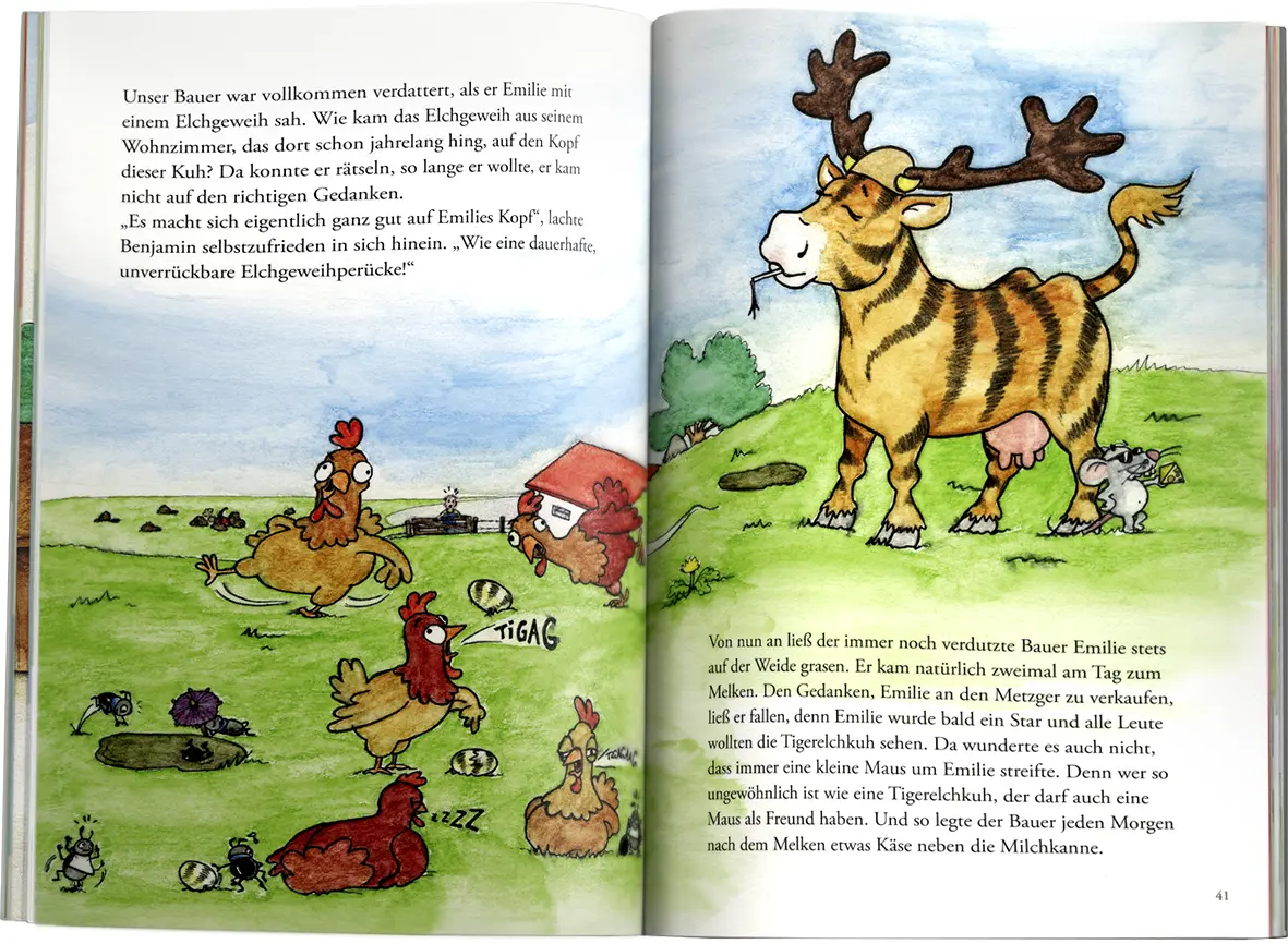 Die kleine Maus Benjamin lebt glücklich und zufrieden auf einem Bauernhof in der Nähe eines Tierparks. Benjamins beste Freundin ist die Kuh Emilie. Staunend hört Emilie der Maus zu, wenn sie Geschichten vom Zoo erzählt. „Da würde ich auch gerne mal hin, aber ich als Kuh in den Zoo?“ Da fasst sich Benjamin ein Herz und schließt mit dem Sibirischen Tiger einen Pakt, der die Welt der Kuh Emilie, ja gar des ganzen Bauernhofes, auf den Kopf stellen wird …