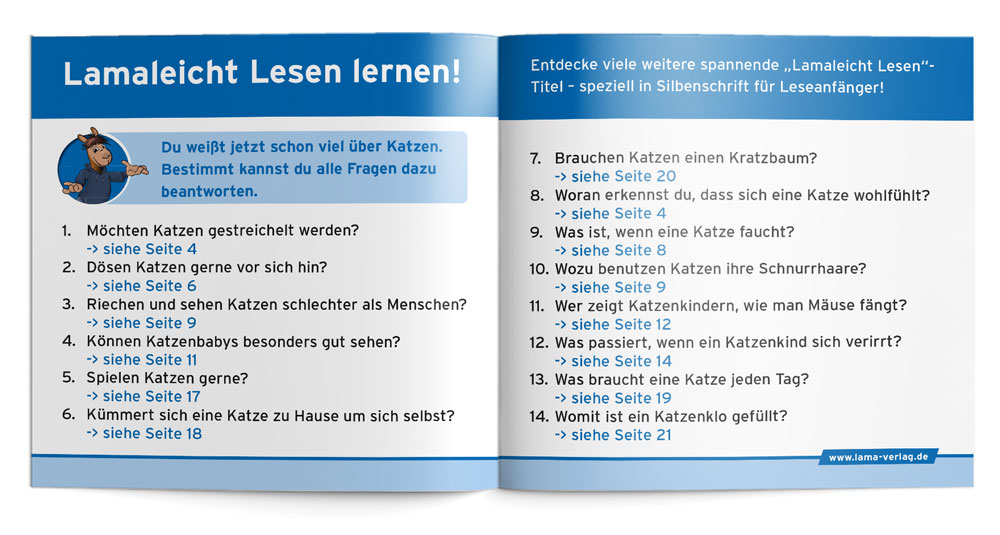 Unser Lama Lenni begleitet Kinder bei ihren ersten Schritten in die kunterbunte Welt des Lesens. Turbulente Geschichten und spannende Wissenstitel wecken ganz nebenbei die Freude an Buchstaben, Wörtern und Sätzen. Die bewährte zweifarbige Silbenmethode ermöglicht es den LesestarterInnen, Texte schneller zu erfassen, den Wortsinn rascher zu begreifen und den Lesefluss zu verbessern. Liebevolle Illustrationen, schlaue Einblicke und gewitzte Storylines halten die Aufmerksamkeitsspanne aufrecht und sorgen für stolze Leseerfolge. So fördert unsere neue Reihe Lamaleicht Lesen spielerisch und mit Begeisterung die Lese- und Schreibkompetenz von Abc-Schützen und fortgeschrittenen AnfängerInnen. Da macht Schule Spaß!