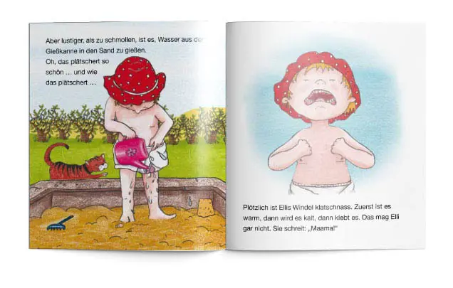 Nein, Elli will nicht aufs blöde Töpfchen gehen. Aber zusammen mit Tiger schafft sie es doch.