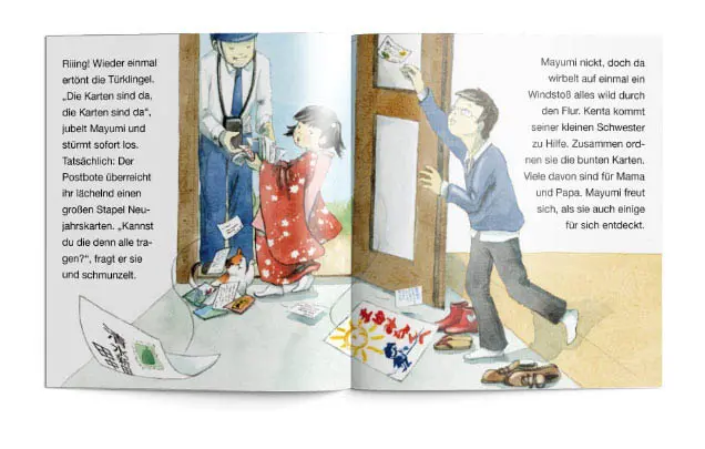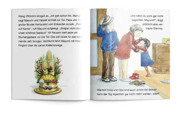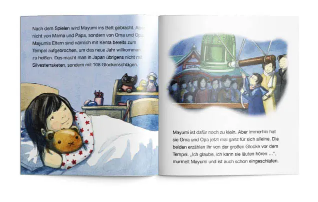 Das kleine Mädchen Mayumi zeigt, wie man das Neujahrsfest in Japan feiert.