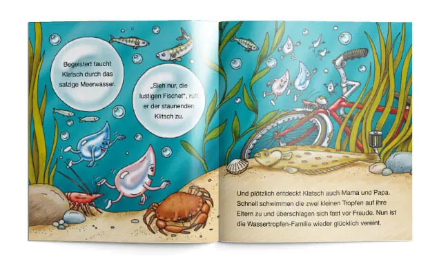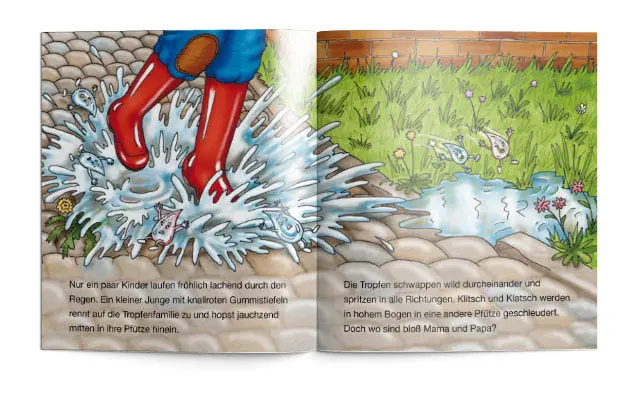 Die Tropfen Klitsch und Klatsch begeben sich auf eine aufregende Reise und lernen dabei den Wasserkreislauf kennen.