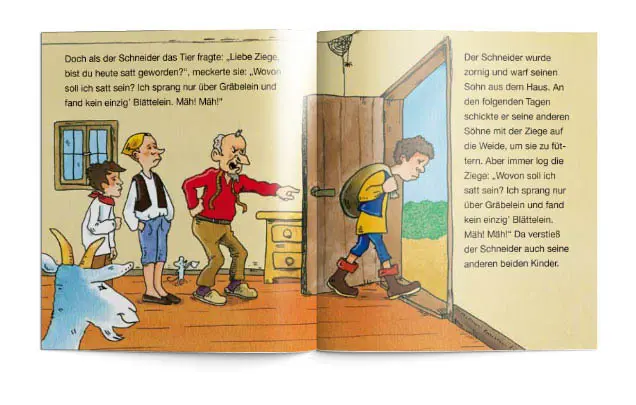 Es war einmal ein Schneider, der hatte drei Söhne. Außerdem besaß er eine Ziege. Die war ihm lieb und teuer. Damit sie immer genug Milch gab ...
