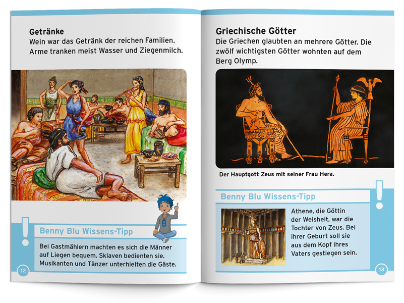 Benny Blu nimmt dich mit auf eine spannende Reise ins „Alte Griechenland“. Wer war eigentlich Zeus? Wie schrieben die alten Griechen? Was ist Philosophie? Und womit spielten die Kinder? Mit spannenden Wissens-Tipps, Benny Blu Odysseus-Irrfahrt und Paar-Spiel.