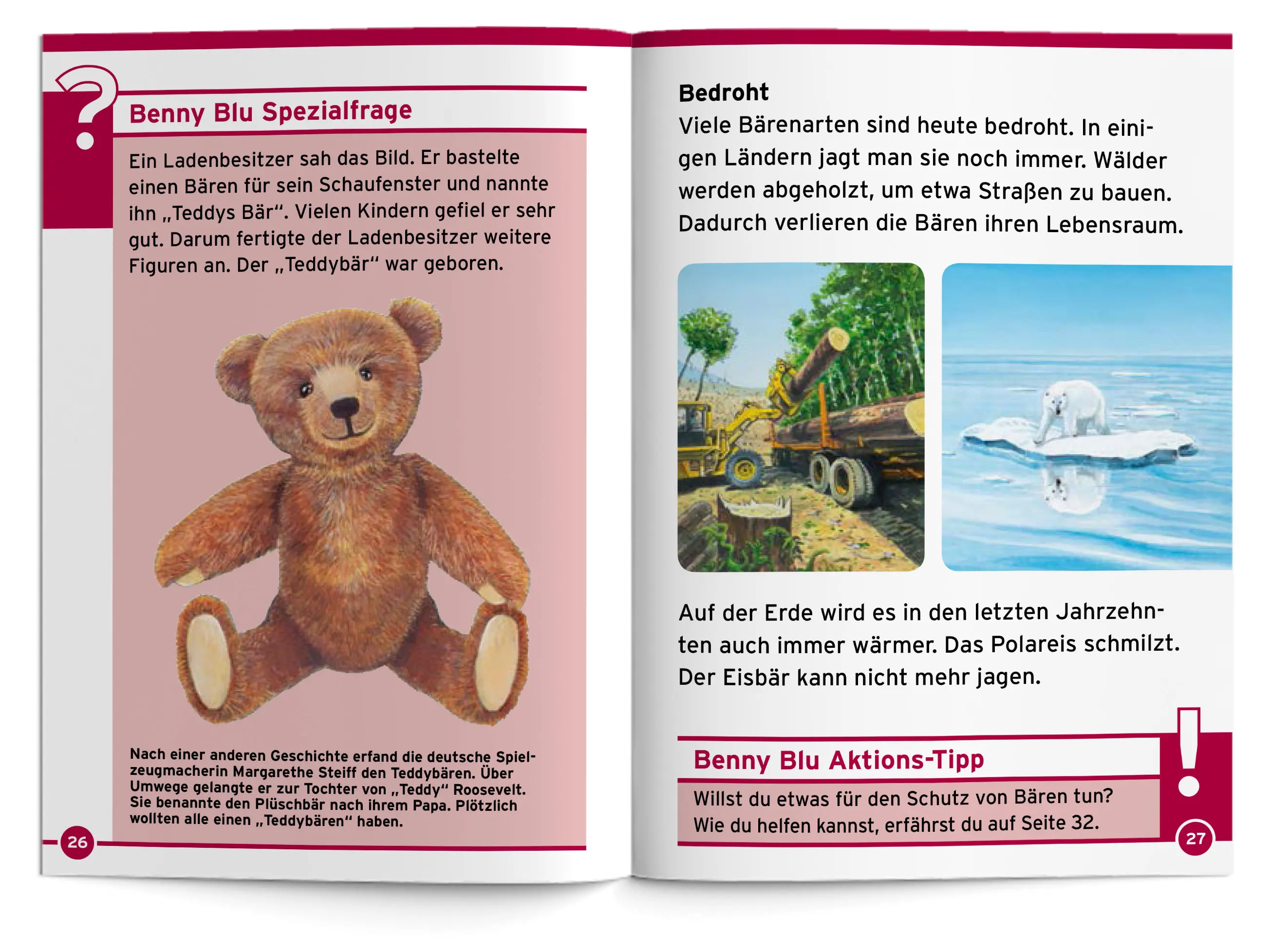 Benny Blu begibt sich mit dir auf die Spur der Bären. Welche Arten unterscheidet man? Wovon ernähren sie sich? Was ist ein Geisterbär? Warum sind Bären bedroht? Und wie entstand eigentlich der Teddybär?