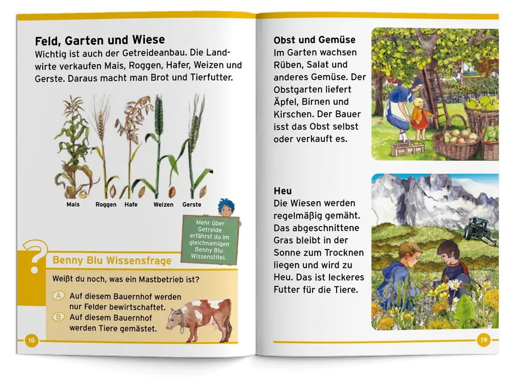 Tiere, Felder, Landmaschinen. Benny Blu erkundet mit dir den Bauernhof. Was gehört zu einem Hof? Welche Tiere leben dort? Warum wälzen sich Schweine im Schlamm? Wie werden die Felder bestellt? Und was macht ein Bauer im Winter?