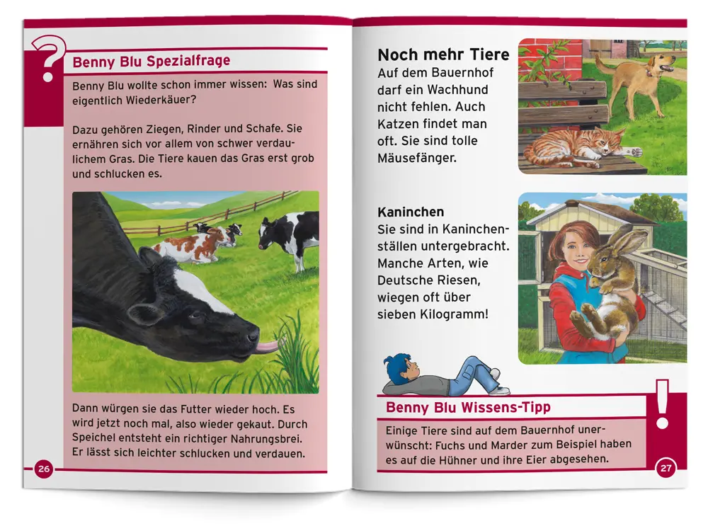 Benny Blu nimmt dich mit auf den Bauernhof. Welche Tiere leben dort? Was ist ein Wiederkäuer? Und wie schwer ist ein Deutscher Riese?
