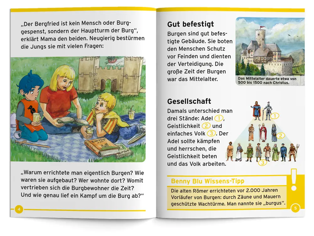Hinter dicken Mauern | Benny Blu erkundet zusammen mit dir spannende Zeitzeugen des Mittelalters: Burgen. Wer wohnte auf einer Burg? War das Leben dort aufregend? Wie lief ein Kampf um eine Burg ab? Und gab es verborgene Geheimgänge wirklich?