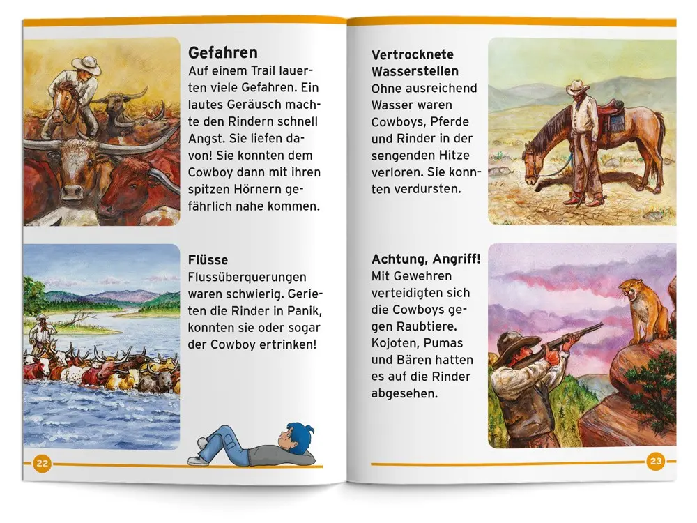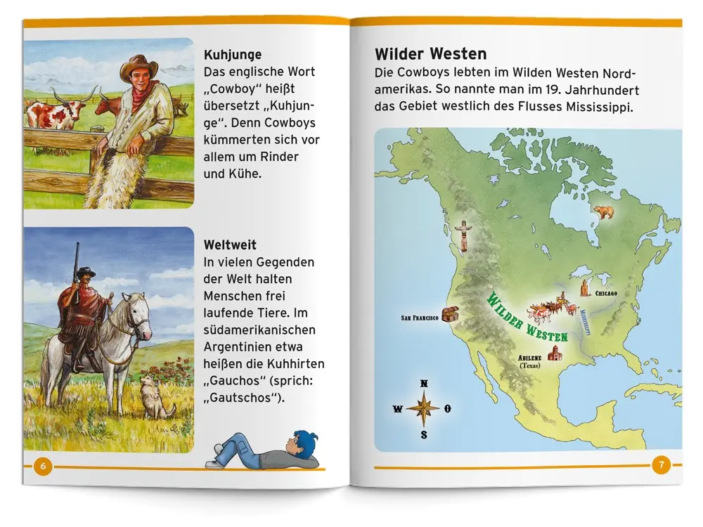 Mit Lasso, Stiefel und Cowboyhut. Benny Blu nimmt dich mit auf eine abenteuerliche Reise in den Wilden Westen. Wie sahen die Cowboys aus? Wo lebten sie? Und wer war der gefährlichste Revolverheld im Wilden Westen?