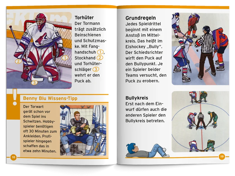 Benny Blu entdeckt mit dir die schnellste Mannschaftssportart der Welt. Wie ist Eishockey entstanden? Welche Regeln gibt es? Was tragen die Spieler unter dem Trikot? Und wer oder was ist ein Bully? Mit Wissensfrage, Benny Blu Schiedsrichter-Spiel und spannenden Wissens-Tipps.