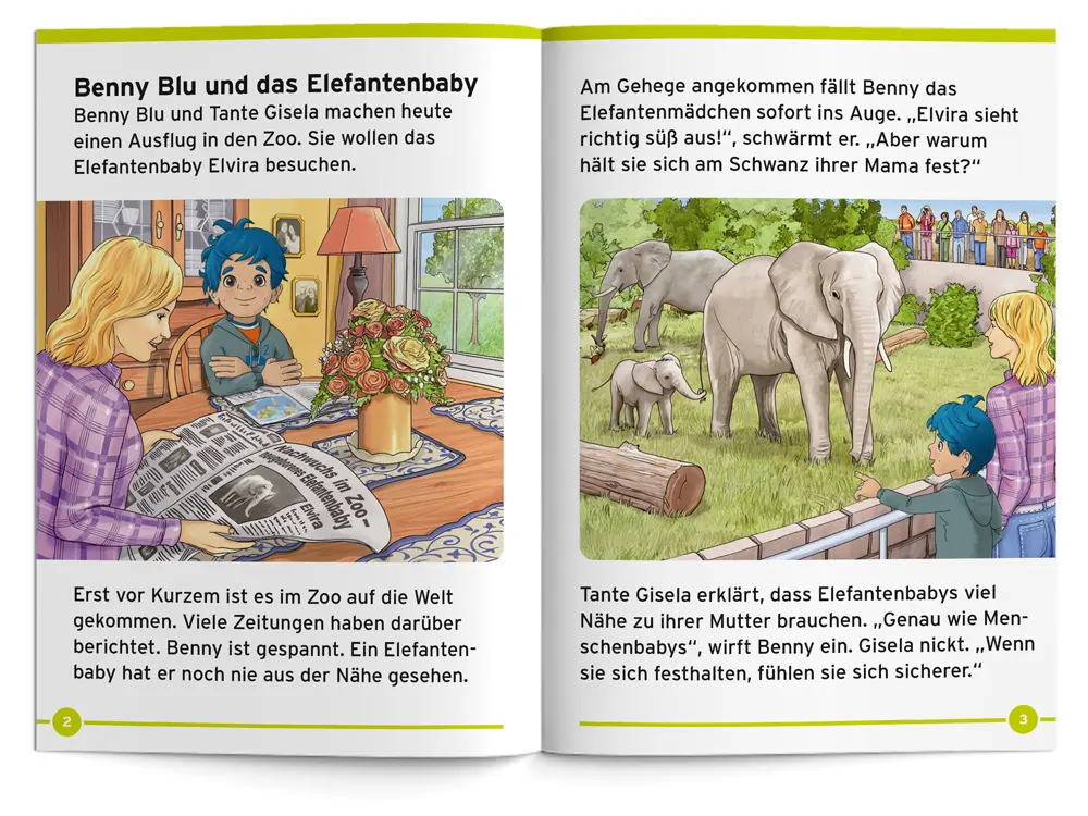 Riesen der Savanne. Benny Blu zeigt dir, wie afrikanische und asiatische Elefanten leben. Wer sind ihre Vorfahren? Wodurch unterscheiden sich die Elefantenarten? Wozu dient ihr Rüssel? Und welche Tiere sind mit dem Elefanten verwandt?