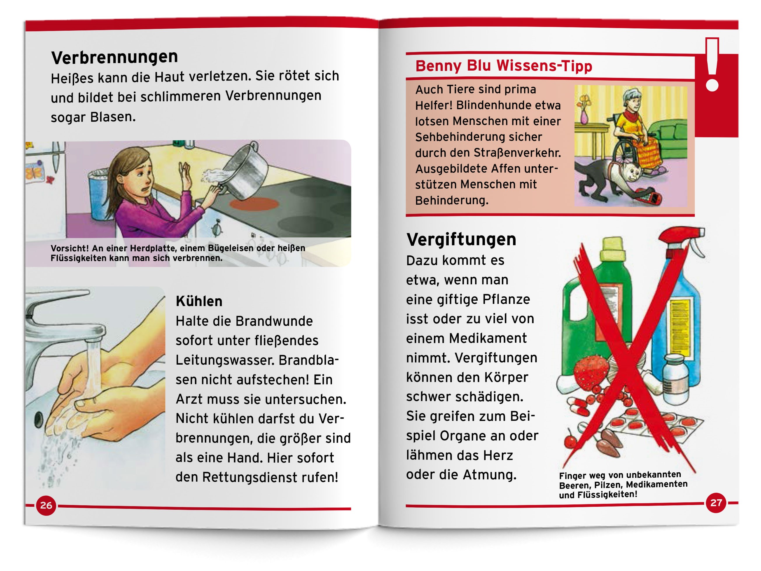 Benny Blu lernt zusammen mit dir wichtige Regeln der Ersten Hilfe kennen. Was ist die Rettungskette? Wie versorgt man einen Insektenstich? Was versteht man unter stabiler Seitenlage? Und wie legst du einen Druckverband an?