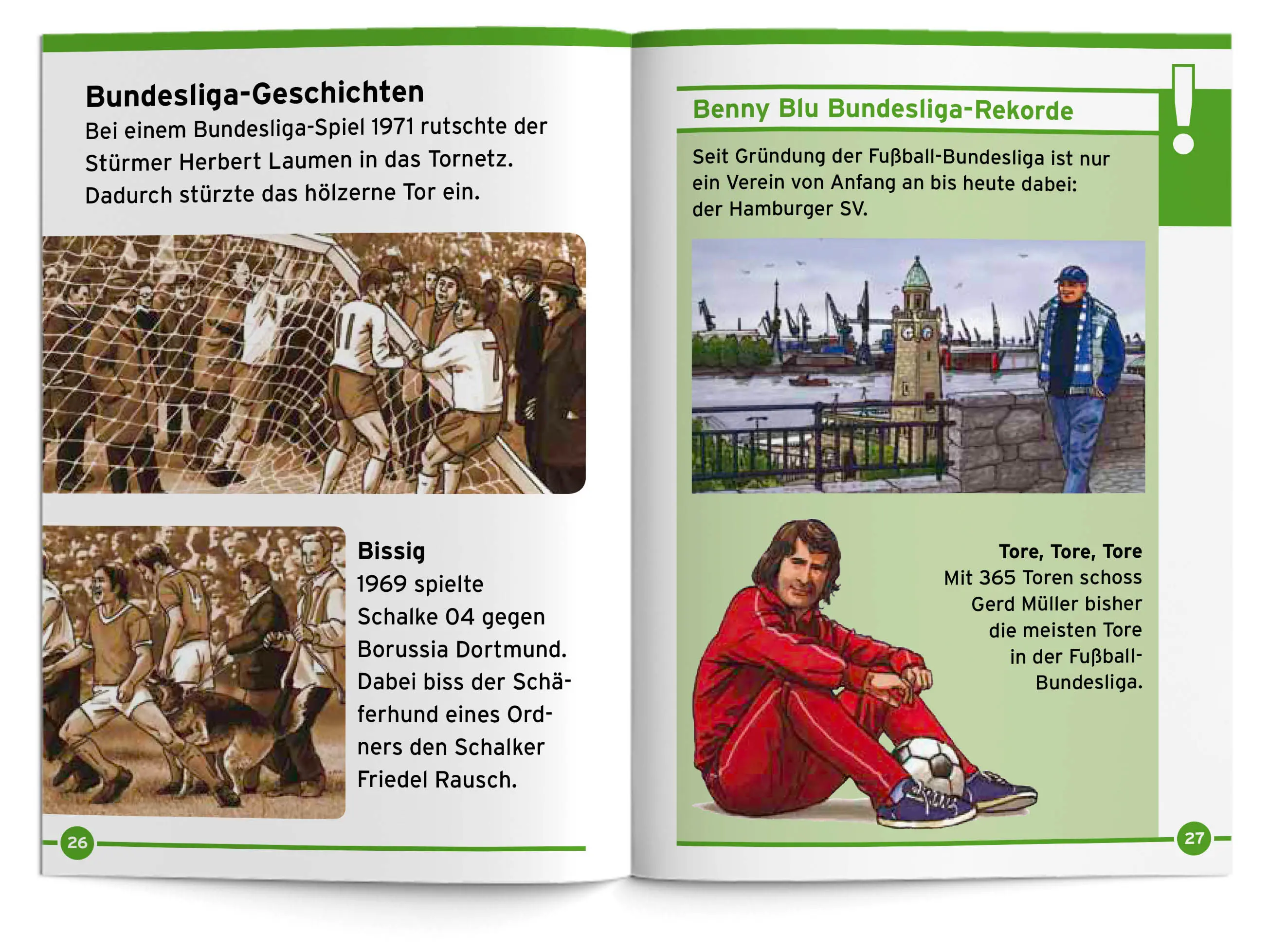 Punkte sammeln für die Meisterschaft. Benny Blu nimmt dich mit zu einem Spiel der Fußball-Bundesliga. Welches Stadion fasst die meisten Zuschauer? Wer ist der Rekordmeister? Und was ist die Salatschüssel im Fußball?