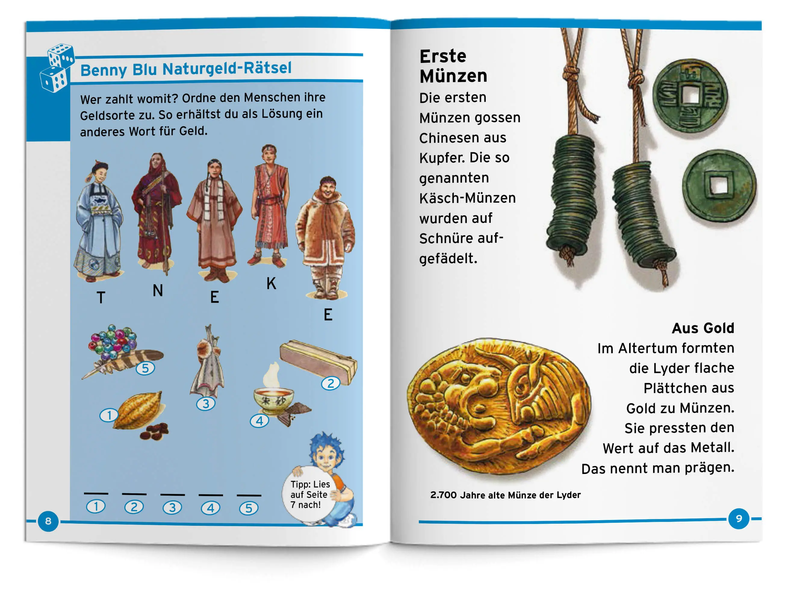 Benny Blu nimmt dich mit auf eine spannende Reise in die Welt des Geldes. Woher kommt das Geld? Warum zahlte man früher mit Salz? Wie arbeitet eine Bank? Was ist Diridari? Und wer war Krösus?