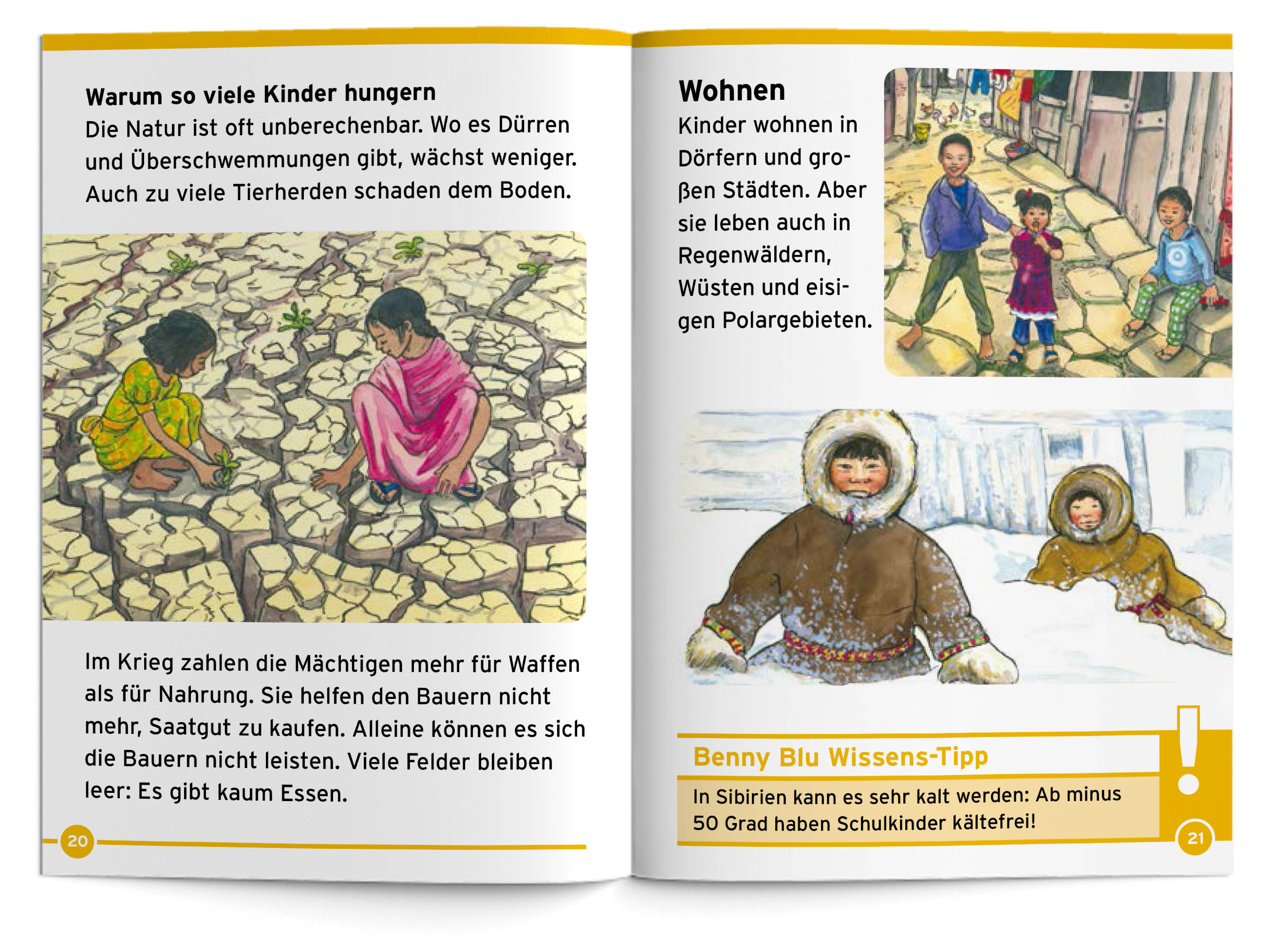 Viele Länder | eine Welt. Benny Blu zeigt dir, wie die Kinder in anderen Ländern leben. Warum gibt es Kinder mit dunkler Haut? Was essen deine Altersgenossen in Afrika und Indien gerne? Und warum müssen viele Kinder hungern?