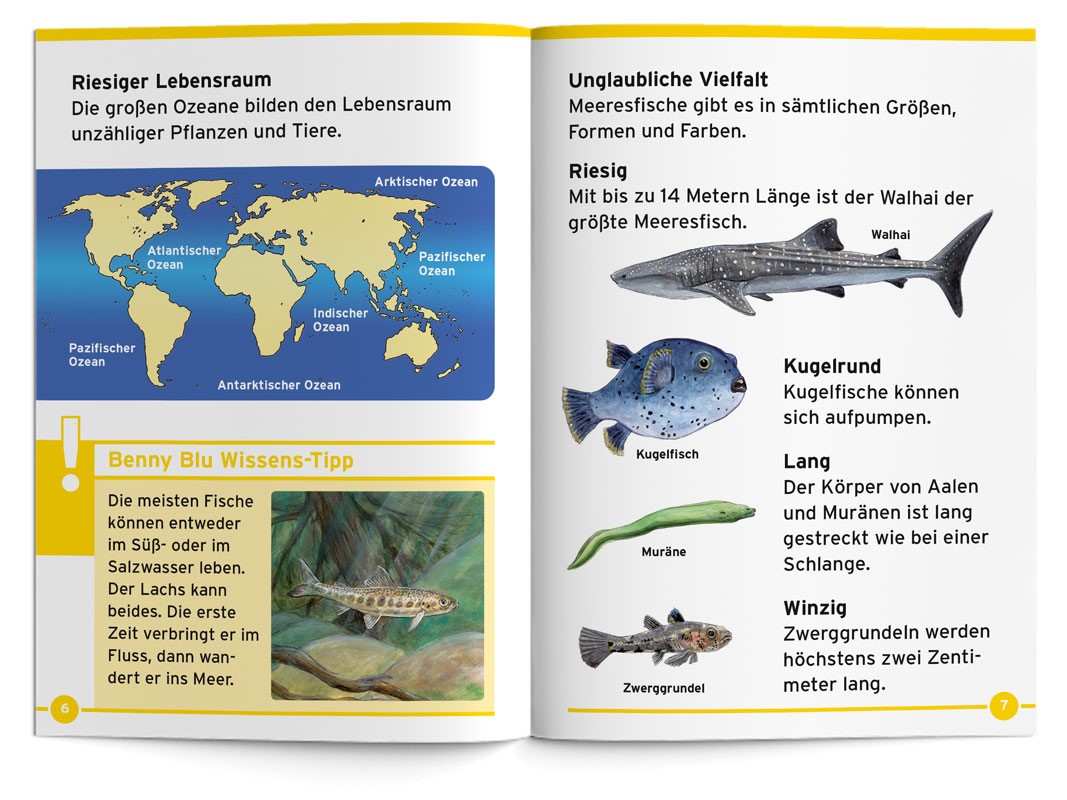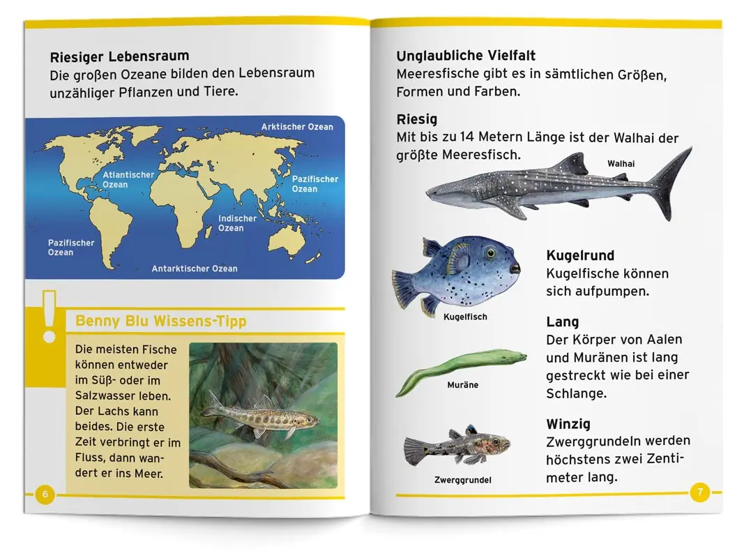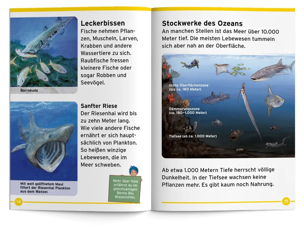 Tauchgang in die Tiefe. Benny Blu nimmt dich mit auf eine spannende Reise in die Welt der Meeresfische. Wie atmen Fische unter Wasser? Wie lebt ein Tiefseefisch? Wer oder was ist ein Knurrhahn? Und sind Fische wirklich stumm?