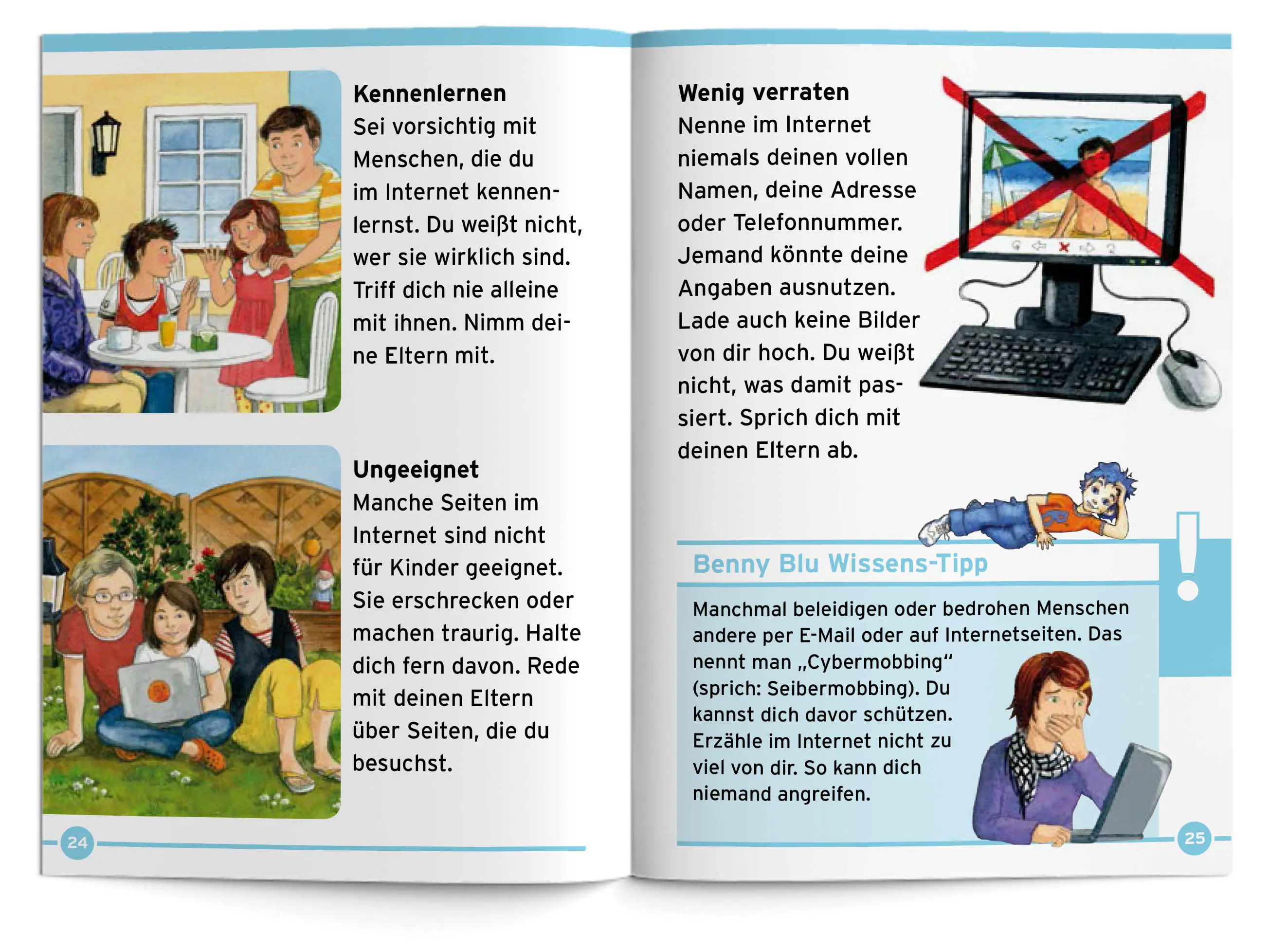 Benny Blu macht dich stark und zeigt dir, wie du selbstbewusst gefährliche Situationen meistern kannst. Wie verhalte ich mich gegenüber Fremden? Was ist Mobbing? Welche Gefahren lauern im Internet? Und kann man Neinsagen lernen?