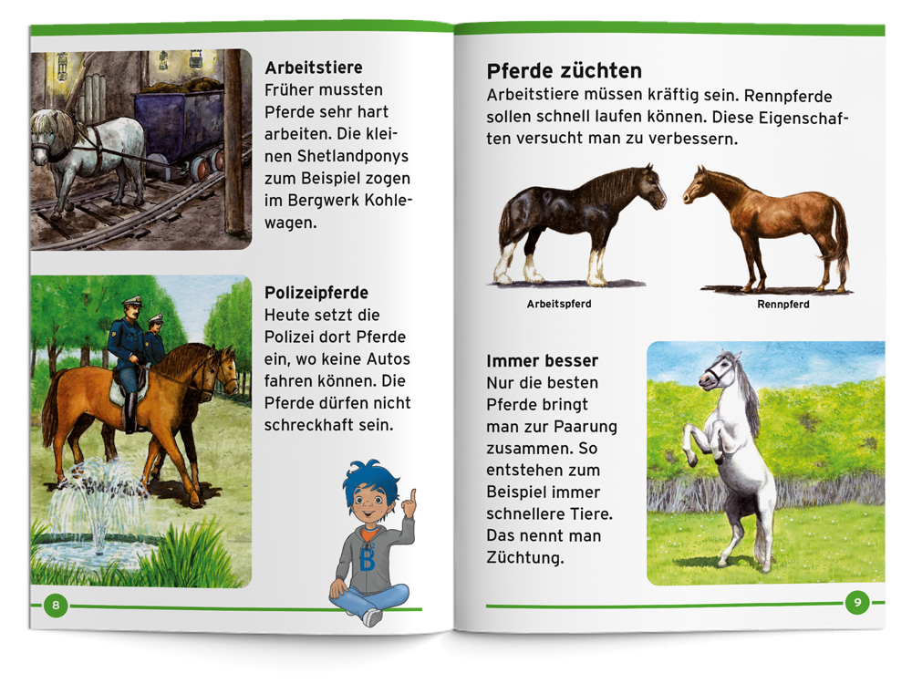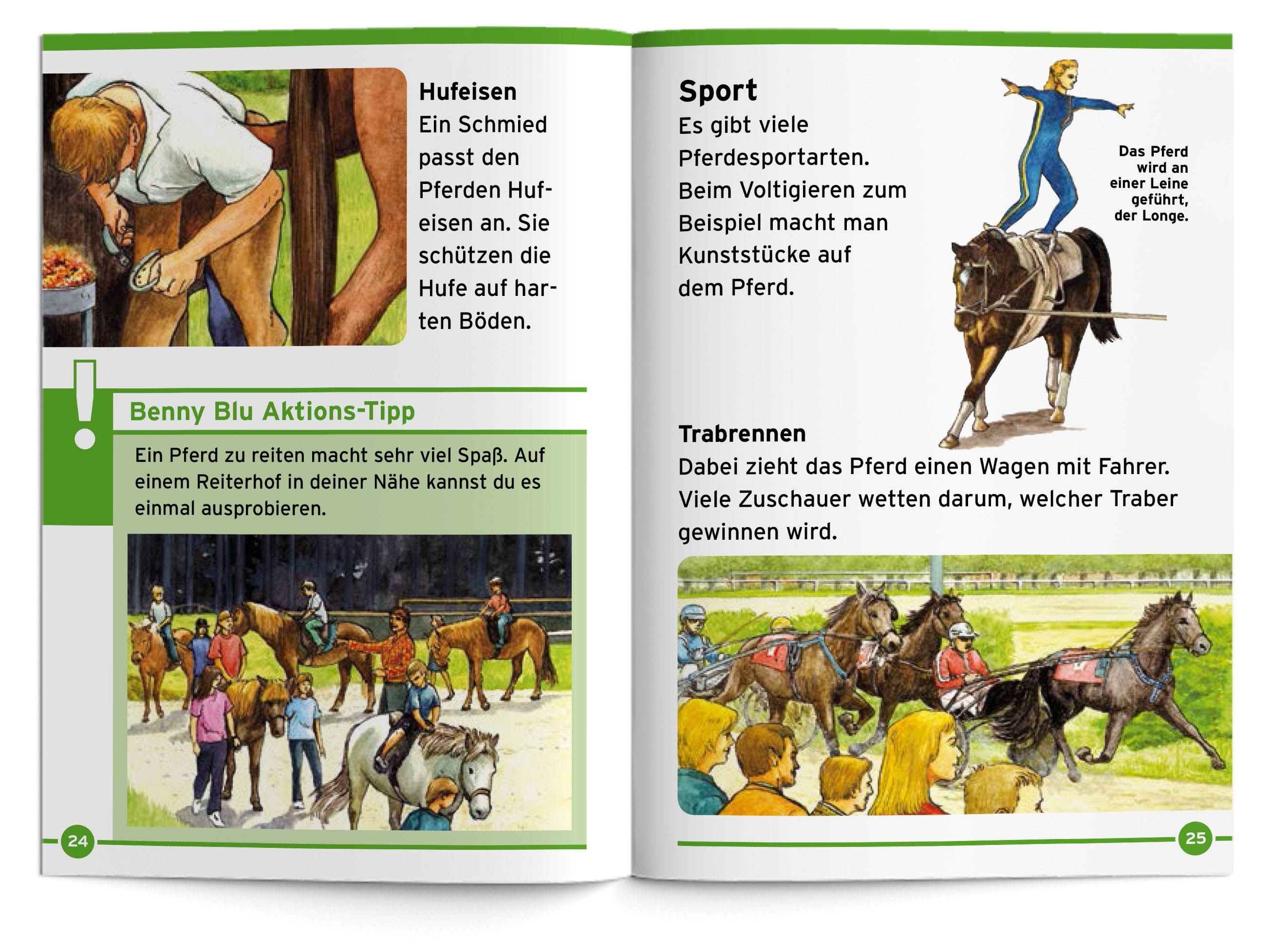 Schnelle Pferde und ruhige Ponys. Benny Blu besucht mit dir einen Reiterhof. Woher kommen die Pferde? Welche Pferderassen gibt es? Was ist ein Abzeichen? Und wie wird ein Fohlen geboren?