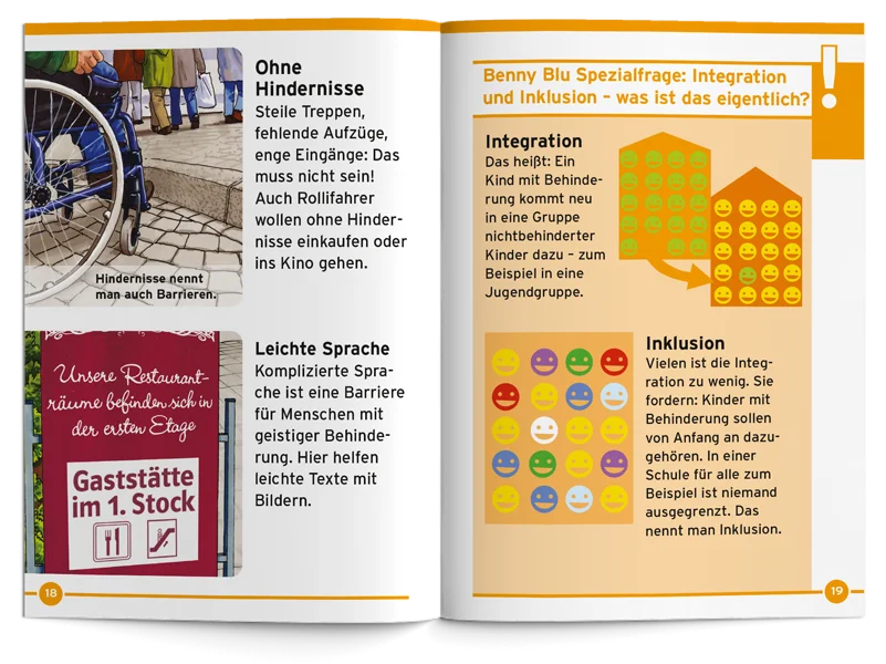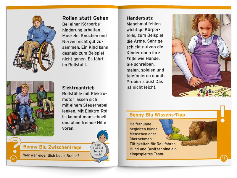 Benny Blu lernt Menschen mit Behinderung kennen. Er zeigt, wie sie mit ihrer Einschränkung leben. Wer war Louis Braille? Was bedeutet Inklusion? Und wo gehen Kinder mit Behinderung eigentlich zur Schule? Mit tollen Wissens-Tipps, Braille-Rätsel und Benny Blu Rollstuhl-Fahrt.