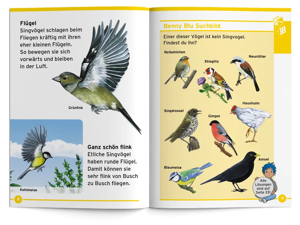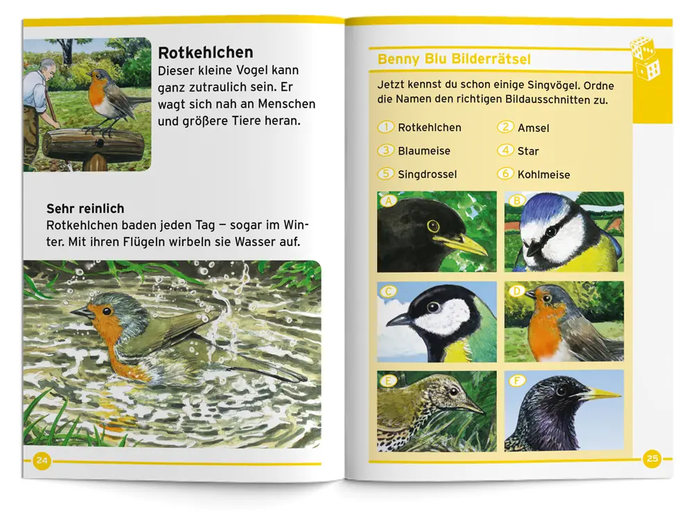 Amsel, Drossel, Fink und Star. Benny Blu zeigt dir die Meistersänger in deinem Garten. Welche Singvögel gibt es? Warum singen sie? Was ist die Balz? Und wie leben Singvögel?