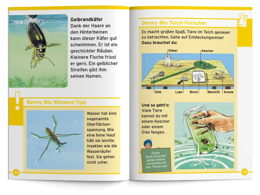 Leben im und am Wasser. Benny Blu erforscht mit dir das spannende Leben im Teich. Welche Tiere fühlen sich im Teich wohl? Was ist ein Stichling? Wo wächst der Rohrkolben? Und warum brauchen Bitterling und Teichmuschel einander?