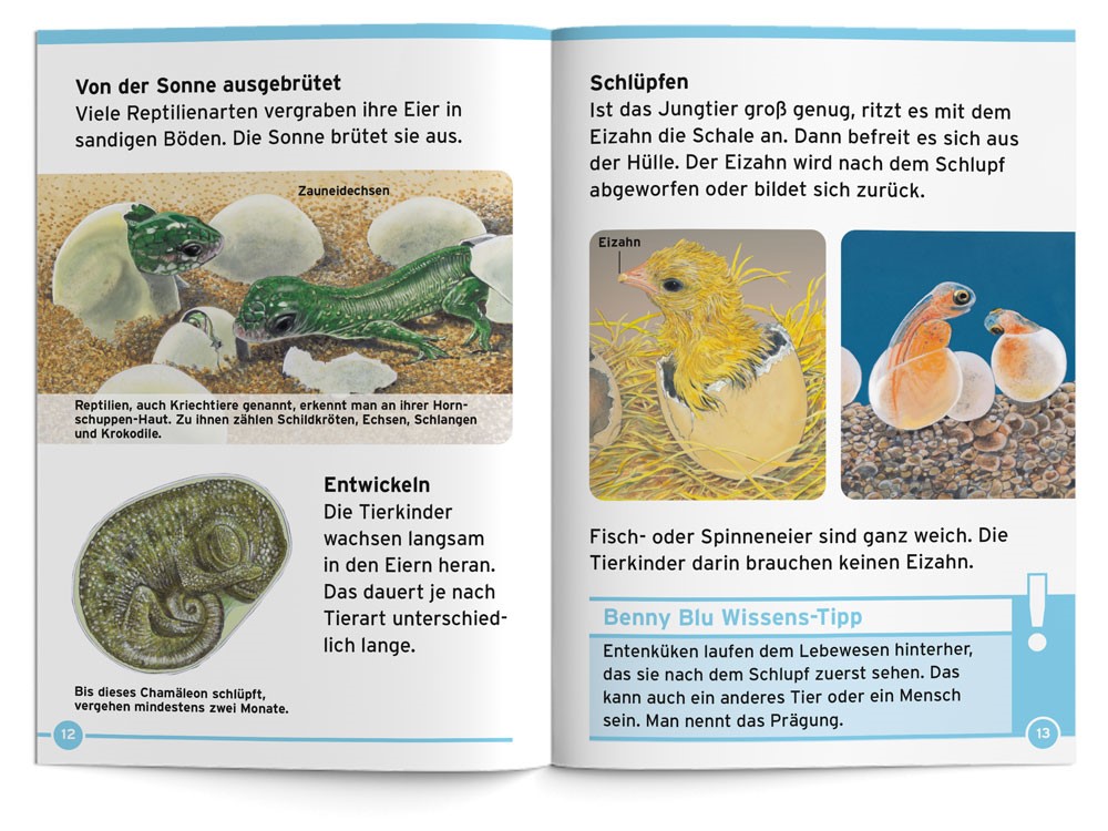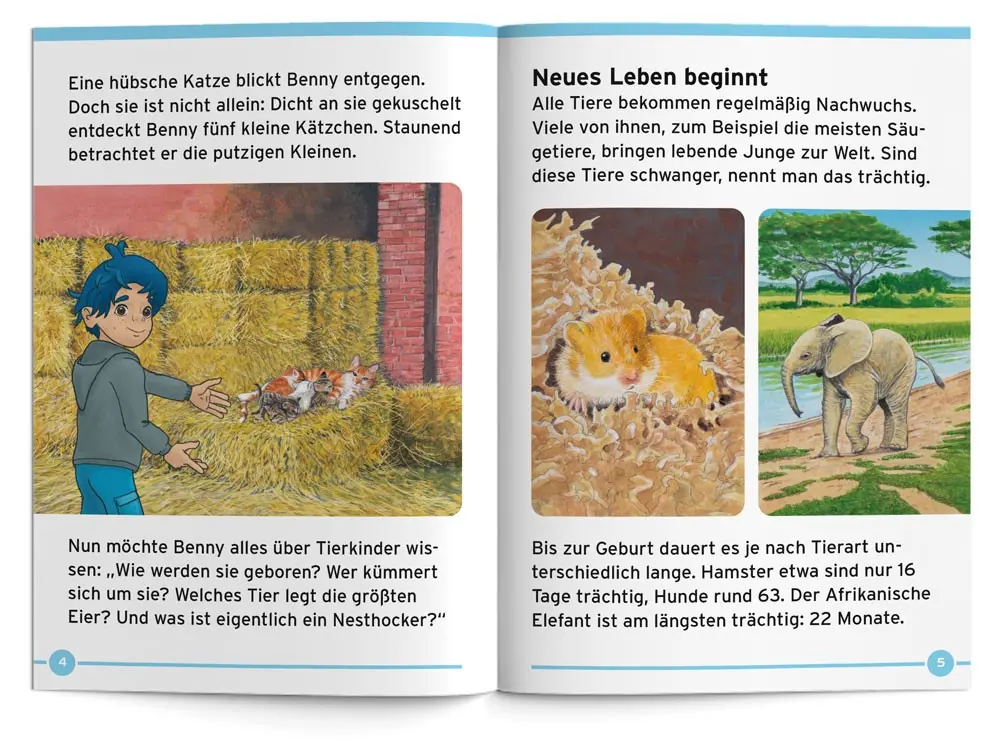 Benny Blu stellt dir viele niedliche Tierkinder vor. Welches Tier ist am längsten trächtig? Wie kommen Tierkinder zur Welt? Was ist ein Nestflüchter? Und welches Tierkind ist nur so groß wie ein Gummibärchen?