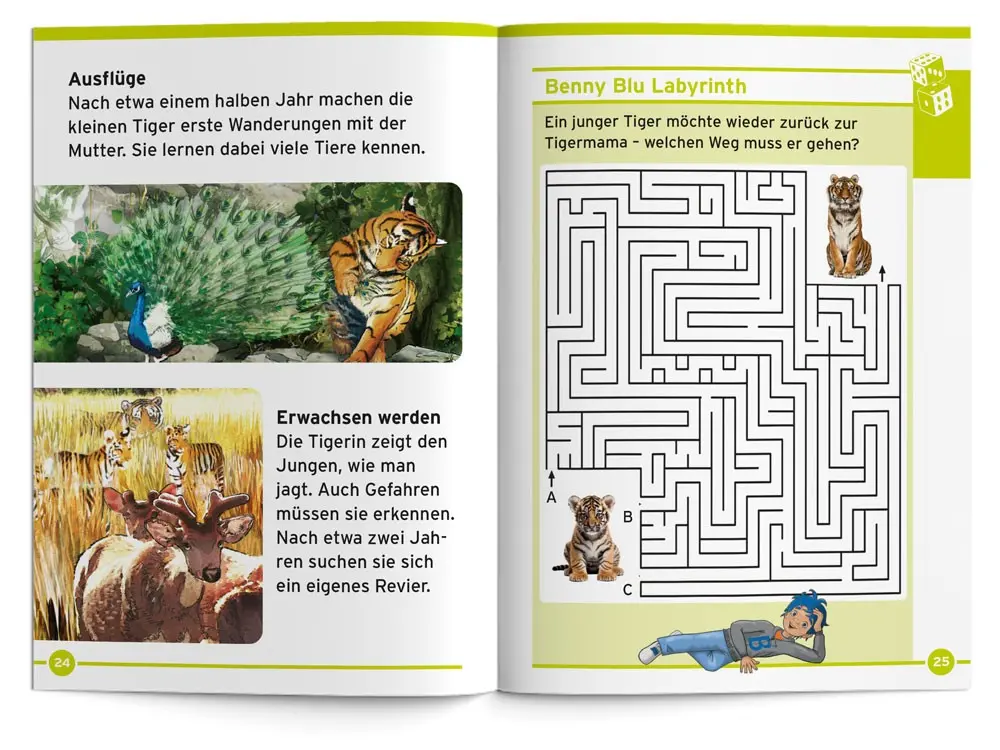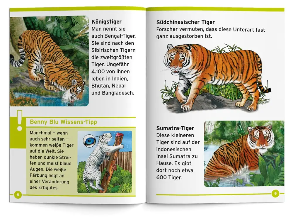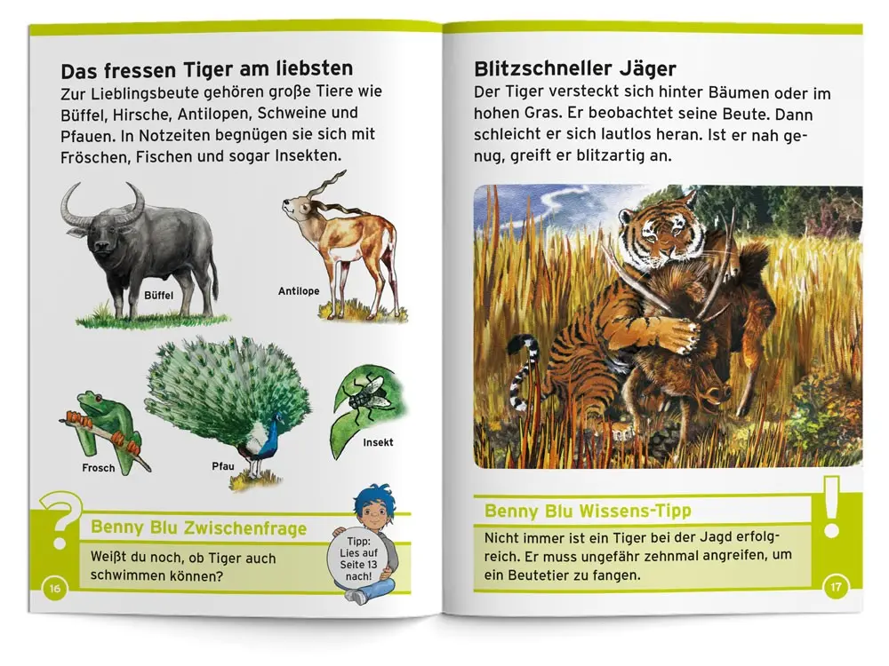 Schön, gefährlich, fürsorglich. Benny Blu erforscht mit dir die Welt der Tiger. Wo leben sie? Welche Arten gibt es? Wie jagen sie? Wie ziehen sie ihre Jungen groß? Und warum ist ihr Fell gestreift?