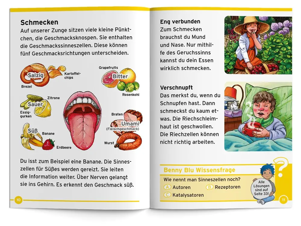 Benny Blu reist mit dir durch den Körper und stellt dir unsere Sinnesorgane vor. Wie funktionieren sie? Wozu benötigen wir sie? Wie viele Sinne gibt es? Und können sich die Sinne auch täuschen?