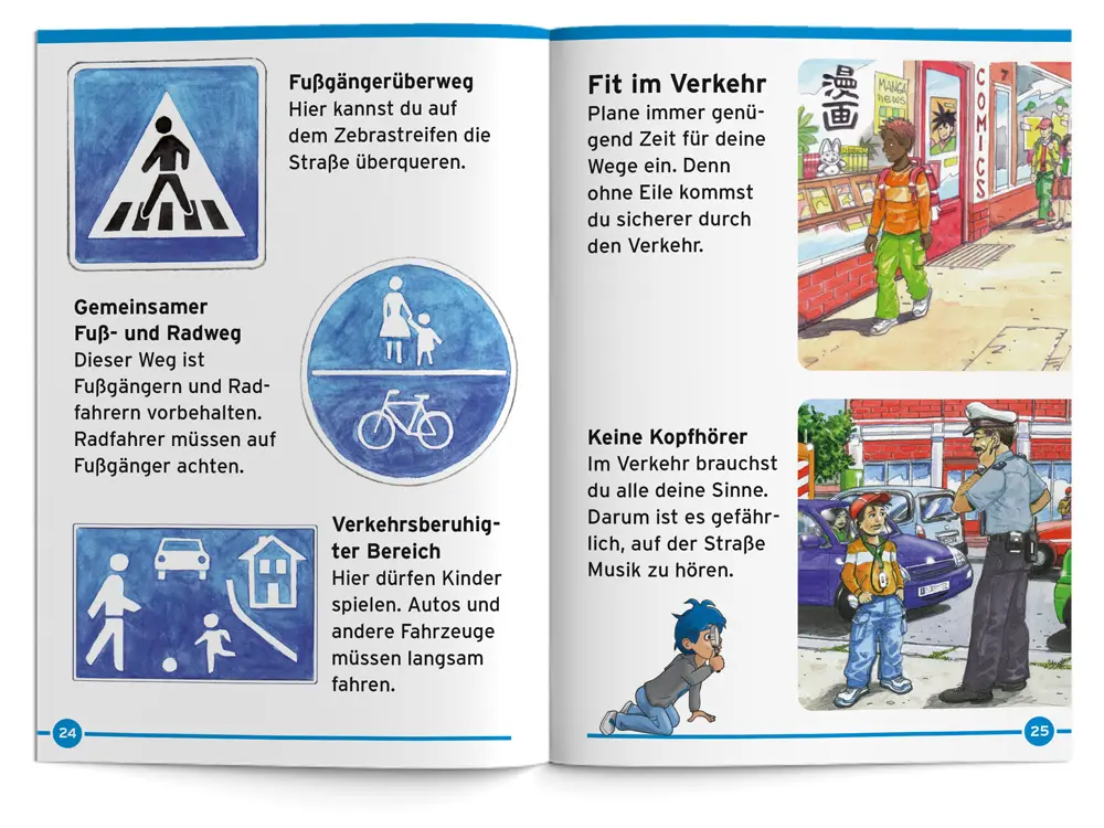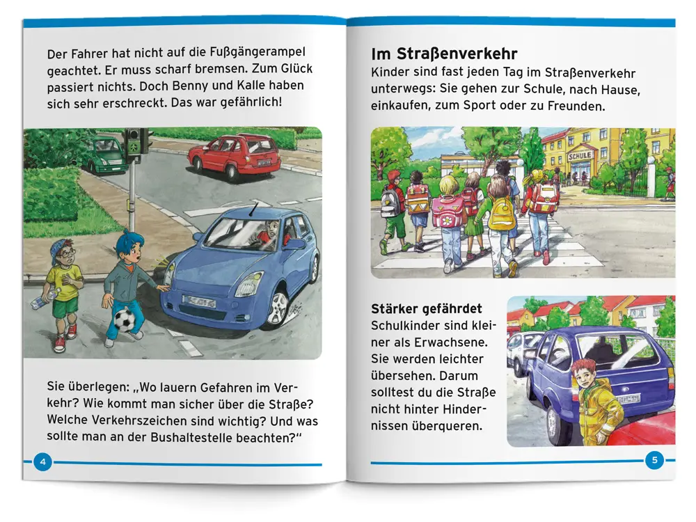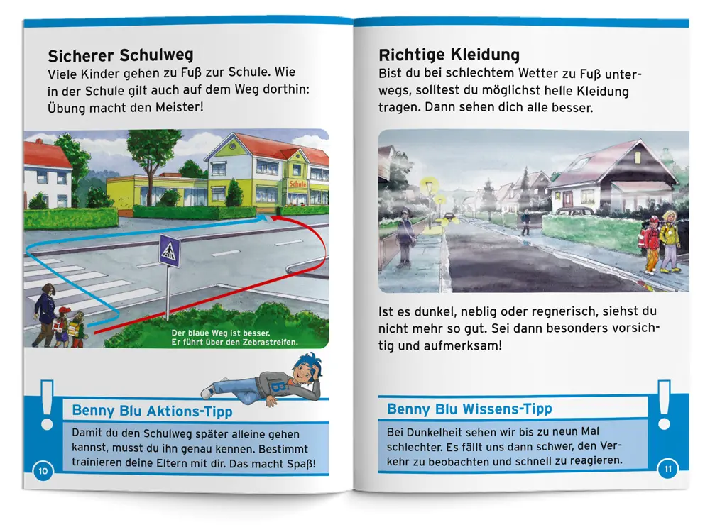 Fit im Straßenverkehr. Benny Blu zeigt dir, wie du sicher durch den Straßenverkehr kommst. Wie überquerst du am besten eine Straße? Worauf musst du an Kreuzungen achten? Und welche Verkehrszeichen solltest du kennen?