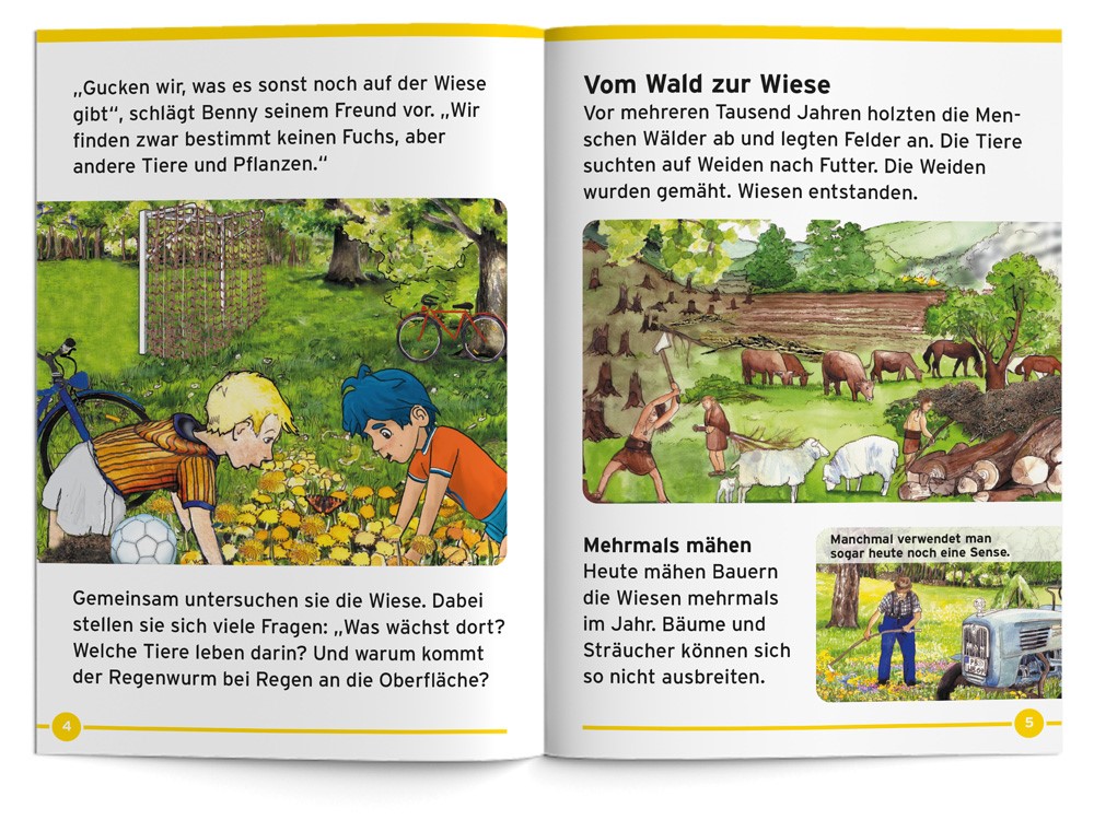 Spannende Wiesenwelt. Benny Blu durchstreift mit dir eine Wiese. Welche Pflanzen und Tiere leben darin? Was ist eine Fettwiese? Welche Stockwerke hat eine Wiese? Und was passiert dort alles in der Nacht?