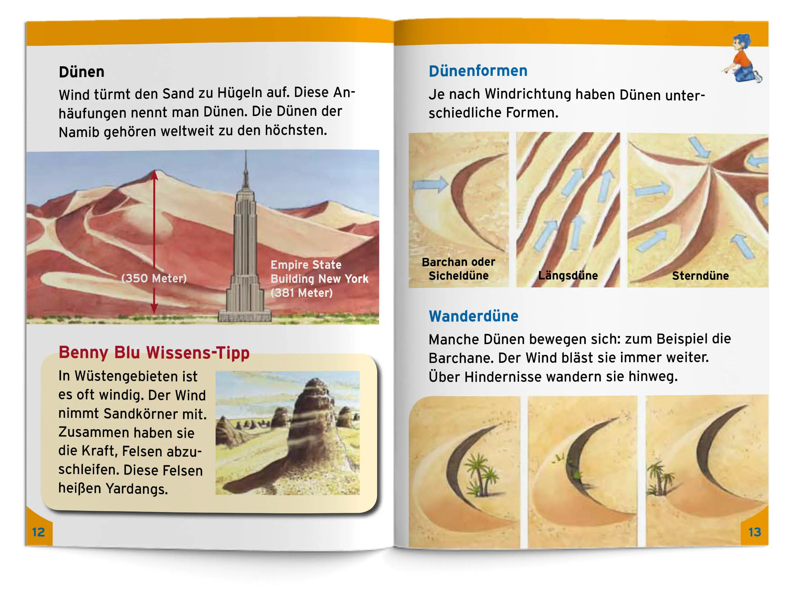 Leben in der Trockenzone. Benny Blu führt dich durch eine ganz besondere Welt: die Wüste. Wo gibt es Wüsten? Wie sind sie entstanden? Wie können Menschen, Pflanzen und Tiere dort leben? Und was sind eigentlich Dünen?