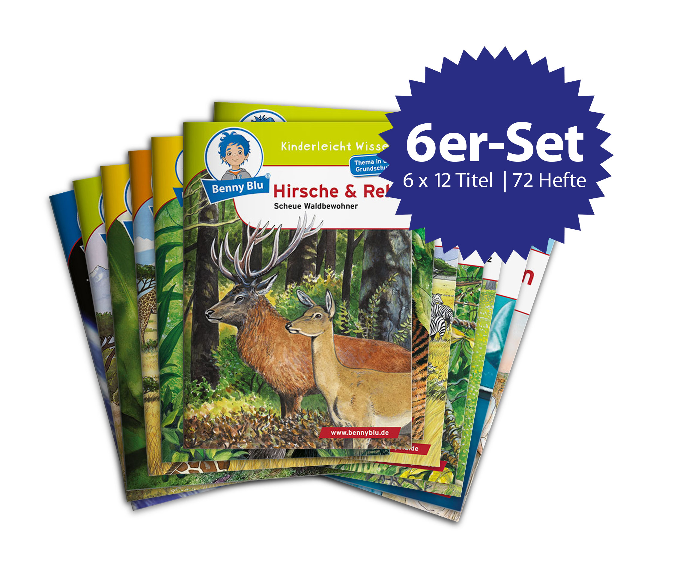 Unsere themenbozogenen Sets richten sich an alle, die nicht genug von den Benny Blu Wissenheften bekommen können. 6 x 12 ausgewählte, kindgerechte Titel laden zum Lesen, Lernen und Staunen ein. Perfekt als Geburtstagsgeschenk oder kleines, sinnvolles Mitbringsel. Falls Sie nur bestimmte Einzelhefte nachbestellen wollen, können Sie das bequem und direkt über die Titelauflistung auf dieser Seite tun.