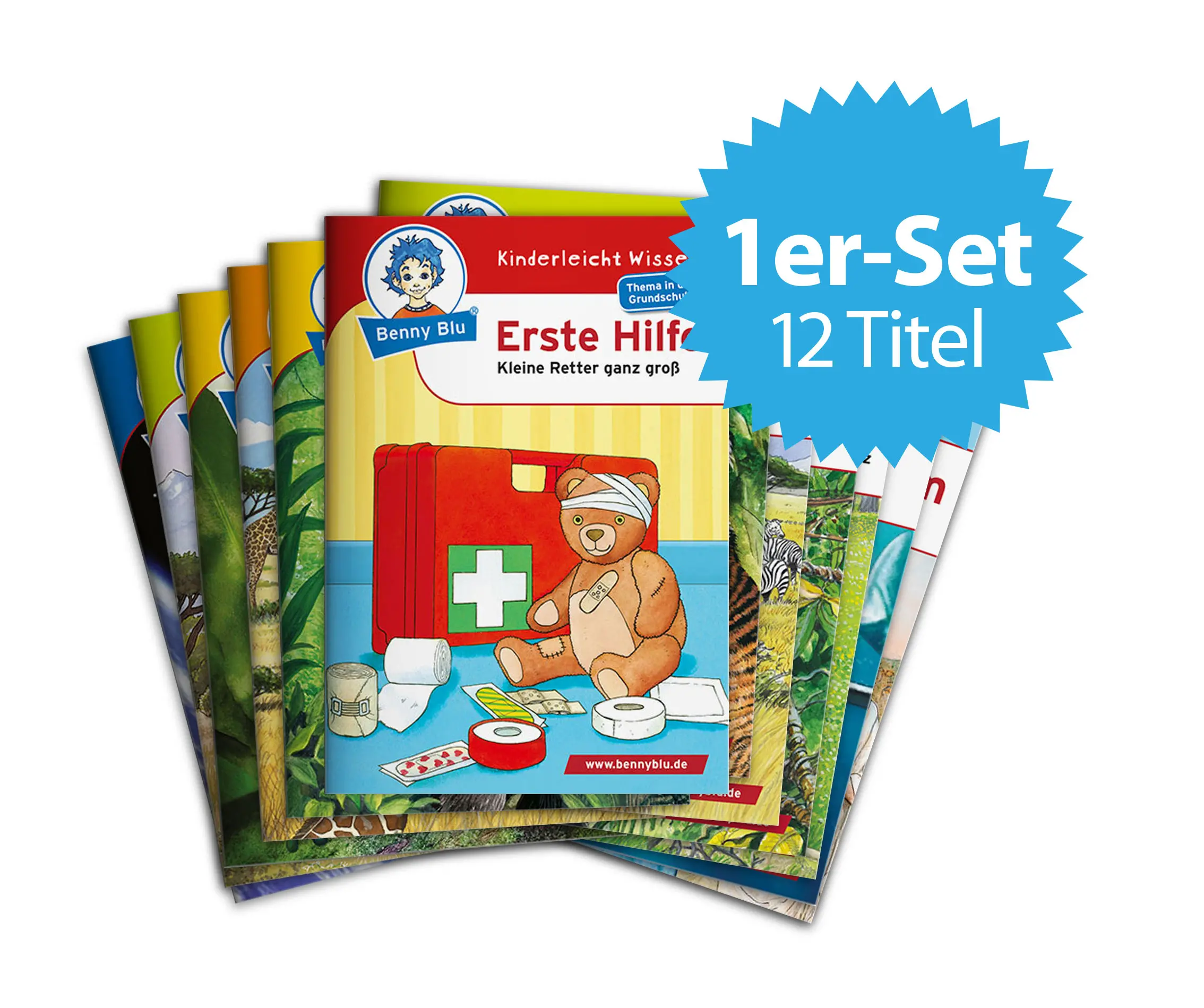 Unsere themenbozogenen Sets richten sich an alle, die nicht genug von den Benny Blu Wissenheften bekommen können. 12 ausgewählte, kindgerechte Titel laden zum Lesen, Lernen und Staunen ein. Perfekt als Geburtstagsgeschenk oder kleines, sinnvolles Mitbringsel. Falls Sie nur bestimmte Einzelhefte nachbestellen wollen, können Sie das bequem und direkt über die Titelauflistung auf dieser Seite tun.