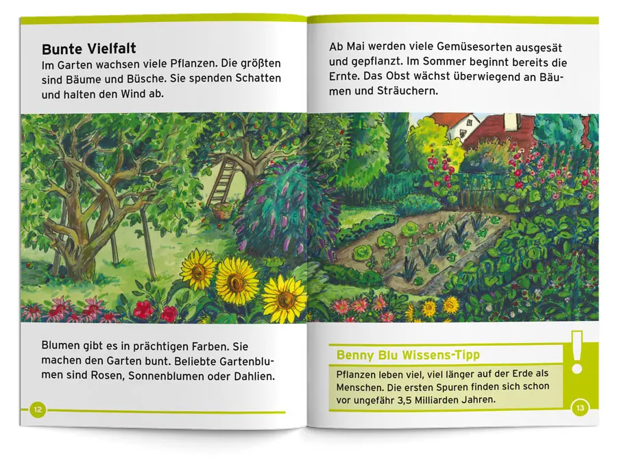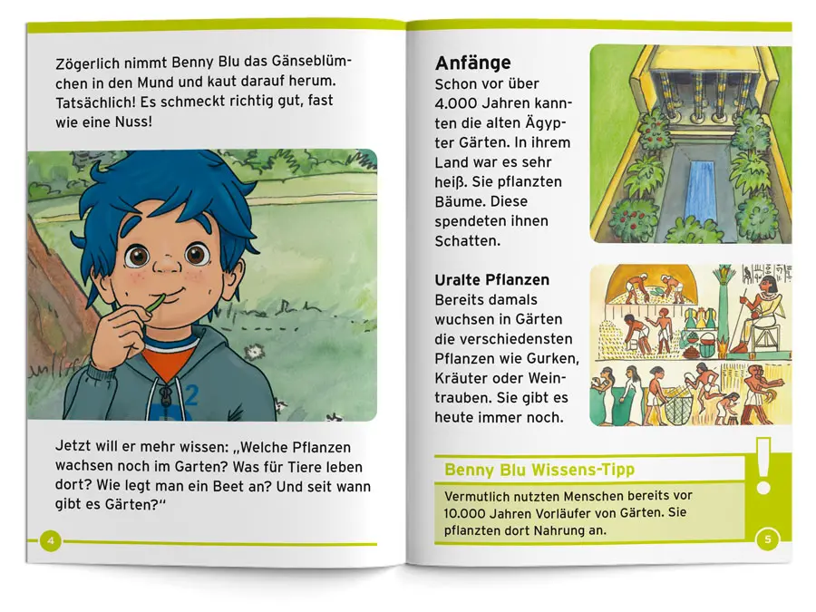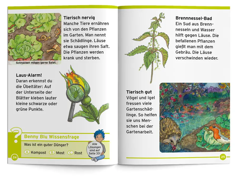 Buddel dich mit Benny Blu durch ein buntes Gartenjahr und triff dabei tierische Helfer und tierische Nervensägen. Welche Gärten gibt es? Was kann man alles ernten? Und was muss man dafür machen? Mit Wissens-Tipps, Benny Blu Bohnen- Olympiade und Garten-Geheimversteck.