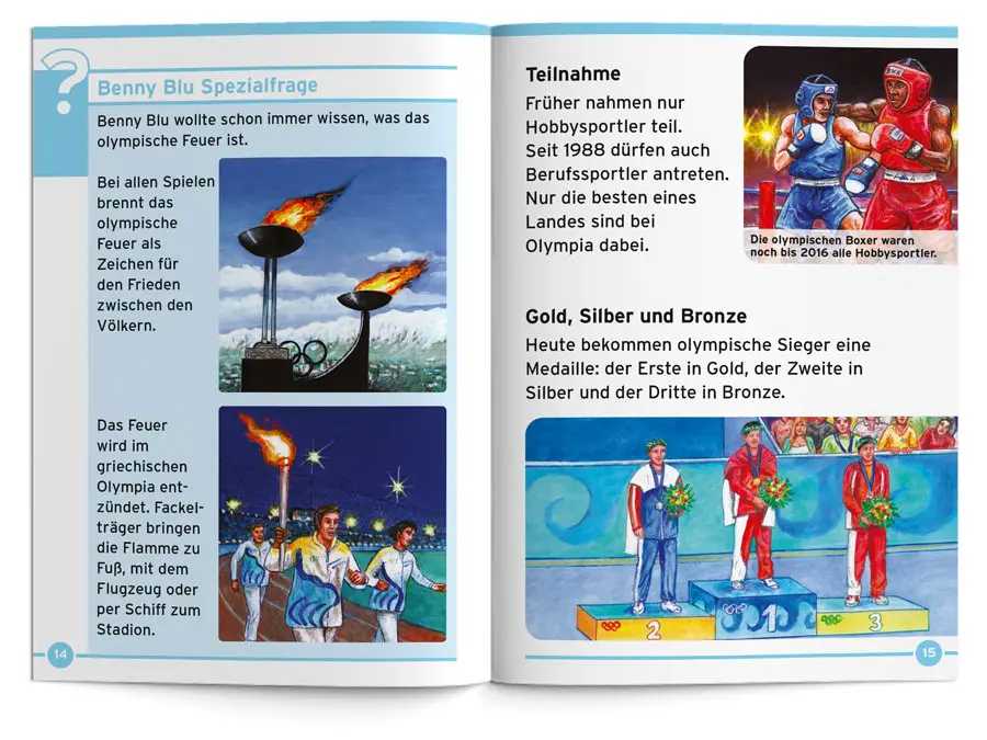 Benny Blu nimmt dich mit zu den Olympischen Spielen. Wie oft finden sie statt? Welche Sportarten sind olympisch? Wer gewann die meisten Goldmedaillen? Und woher haben die Olympischen Spiele ihren Namen? Mit Medaillen-Spiel, sportlichen Wissensfragen und Benny Blu Olympia-Rekorden.