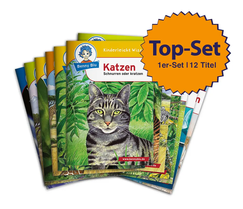 Unsere themenbozogenen Sets richten sich an alle, die nicht genug von den Benny Blu Wissensheften bekommen können. 12 ausgewählte, kindgerechte Titel laden zum Lesen, Lernen und Staunen ein. Perfekt als Geburtstagsgeschenk oder kleines, sinnvolles Mitbringsel. Falls Sie nur bestimmte Einzelhefte nachbestellen wollen, können Sie das bequem und direkt über die Titelauflistung auf dieser Seite tun.