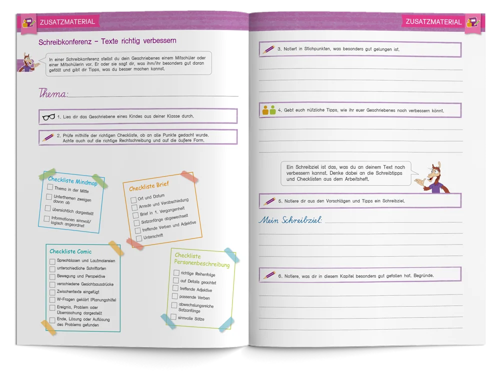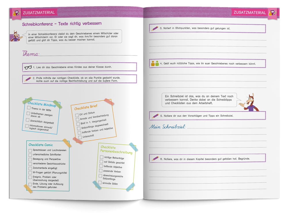 - Zusatzmaterial – Lerntagebuch, Schreibkonferenz und Texte präsentieren