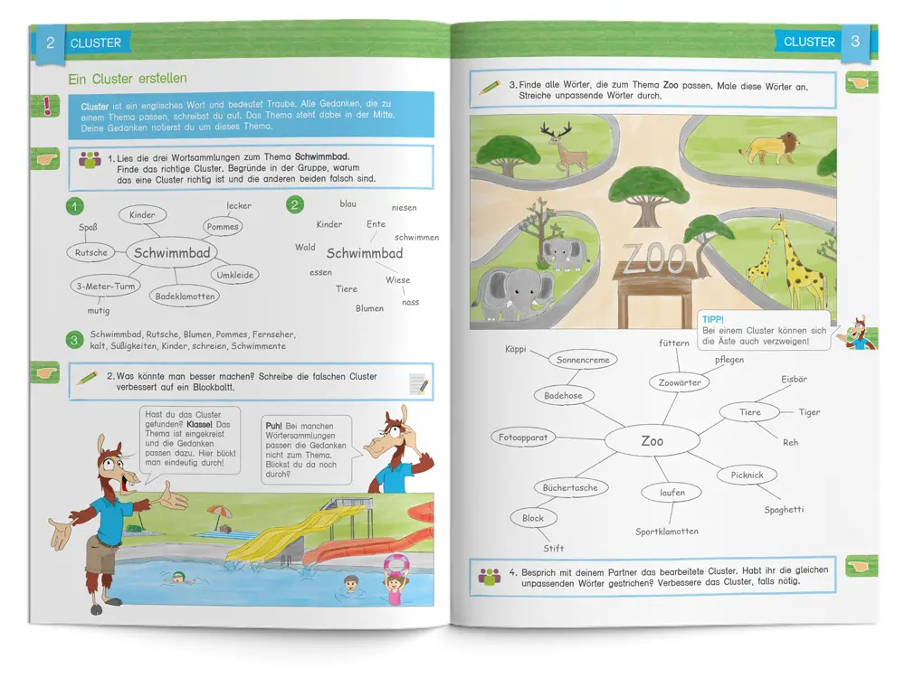 - Cluster – Ideen zu einem Thema finden, sammeln und passend ordnen