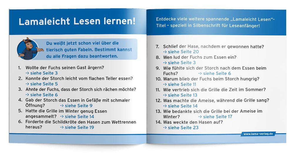 Unser Lama Lenni begleitet Kinder bei ihren ersten Schritten in die kunterbunte Welt des Lesens. Turbulente Geschichten und spannende Wissenstitel wecken ganz nebenbei die Freude an Buchstaben, Wörtern und Sätzen. Die bewährte zweifarbige Silbenmethode ermöglicht es den LesestarterInnen, Texte schneller zu erfassen, den Wortsinn rascher zu begreifen und den Lesefluss zu verbessern. Liebevolle Illustrationen, schlaue Einblicke und gewitzte Storylines halten die Aufmerksamkeitsspanne aufrecht und sorgen für stolze Leseerfolge. So fördert ­unsere neue Reihe Lamaleicht Lesen spielerisch und mit Begeisterung die Lese- und Schreibkompetenz von Abc-Schützen und fortgeschrittenen AnfängerInnen. Da macht Schule Spaß!