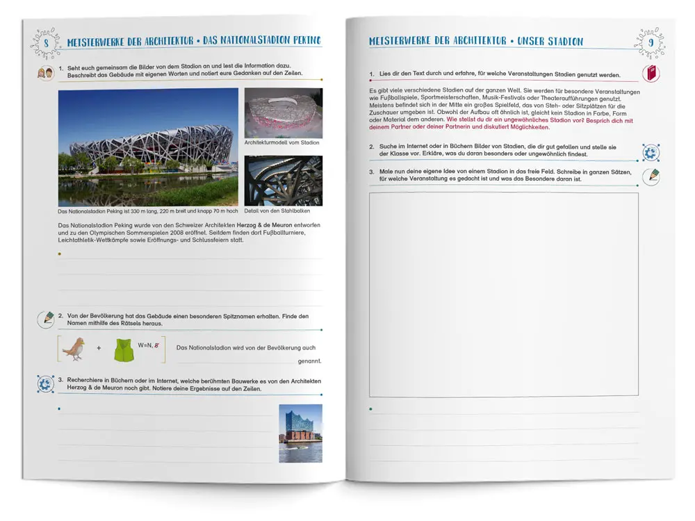- durchgehend farbig illustriert (Kopiervorlagen in schwarz-weiß)