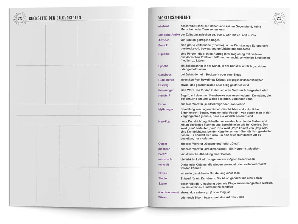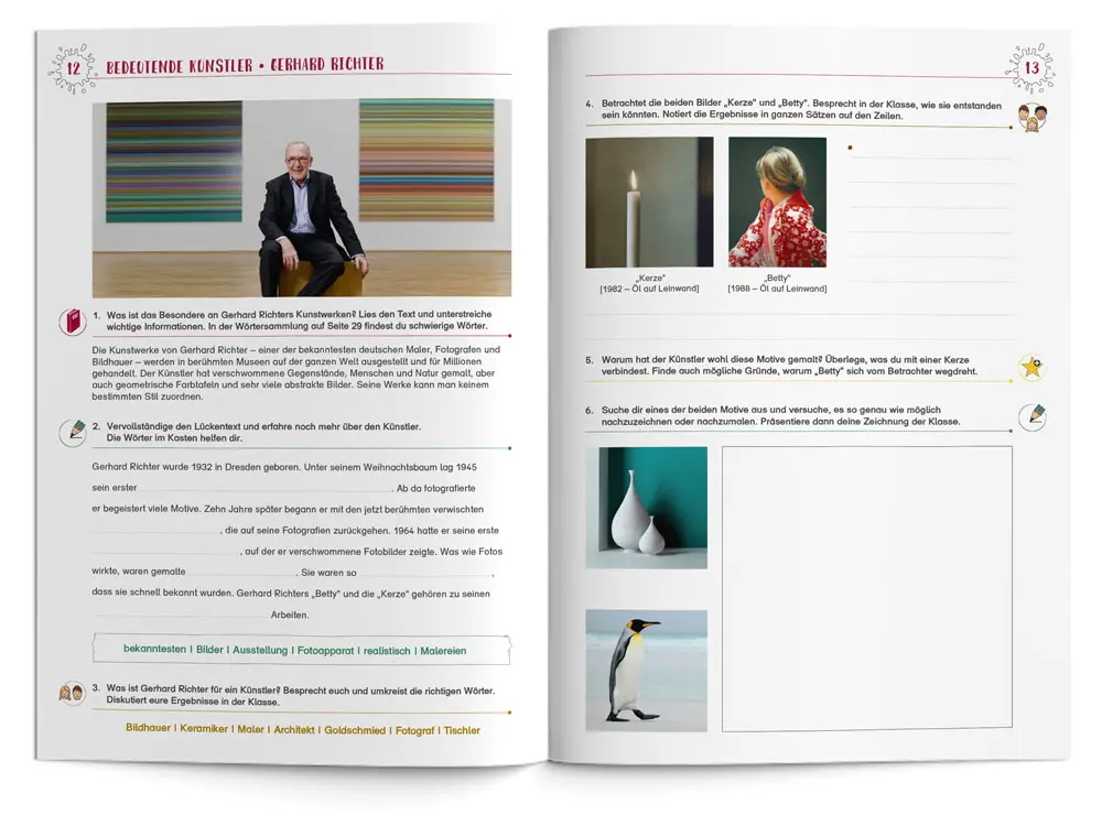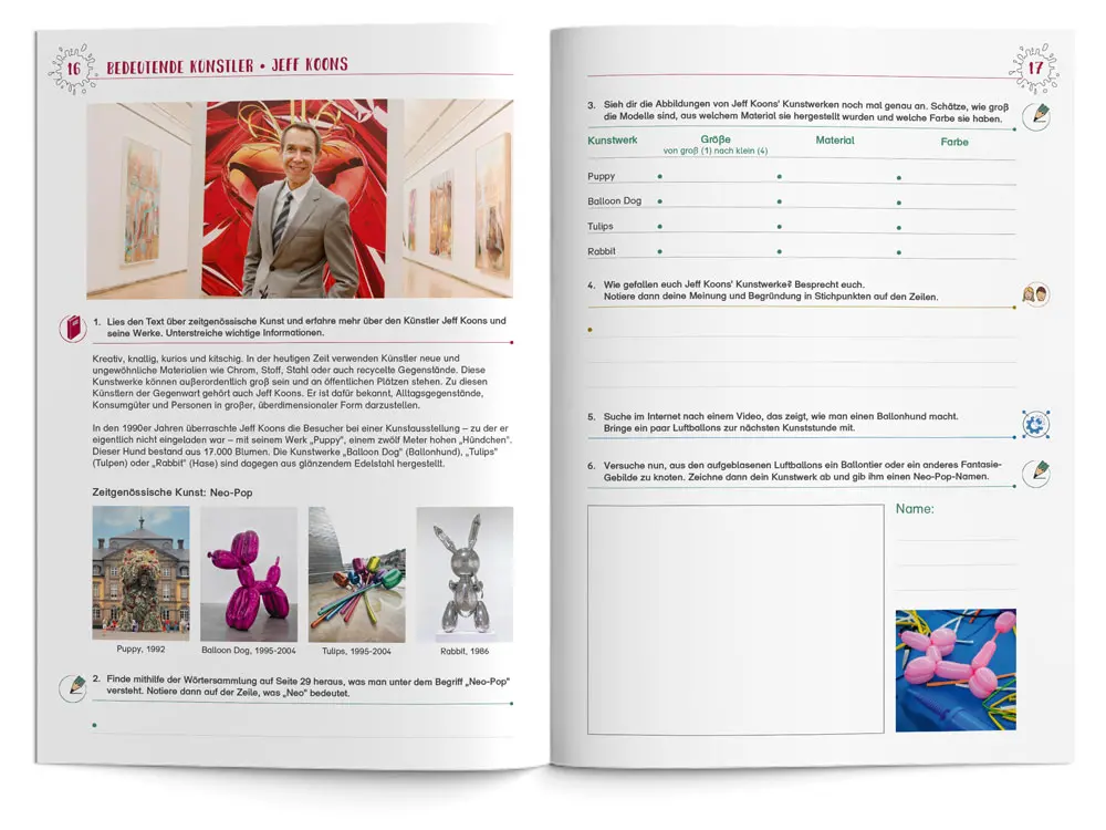 - Kopiervorlagen, Infos zu den Kunstwerken, Bastelanleitungen und die kompletten Lösungen zum Arbeitsheft