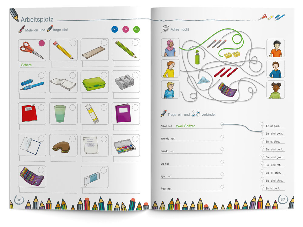 In diesem 56 Seiten starken Arbeitsheft werden die Schüler/-innen von den beiden sympathischen Figuren Frieda und Paul kindgerecht durch verschiedene Kapitel geführt. Die abwechslungsreichen Themen stammen aus der Alltagswelt der Kinder und sind daher leicht verständlich. Da jedes Kapitel auf dem anderen aufbaut, kann Deutsch als Zweitsprache Schritt für Schritt trainiert werden: vom grundlegenden Wortschatz über grammatikalische Regeln bis hin zur Verwendung des erlernten Wortschatzes in ganzen Sätzen. Das Arbeitsheft eignet sich sowohl zum gemeinsamen Erlernen von Deutsch im DaZ-Unterricht als auch zum Selbststudium.