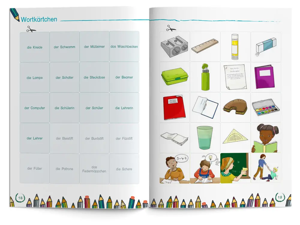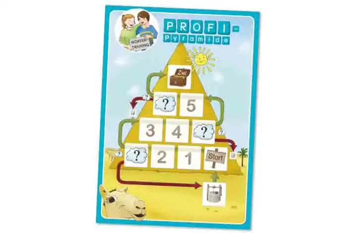 Das Pyramiden-Heft ist die ideale Ergänzung zum Arbeitsheft und bringt noch mehr Abwechslung und Spaß in den DaZ-Unterricht. Es beinhaltet vorgestanzte Lernkärtchen, auf deren Vorderseite ein Bild und auf der Rückseite das entsprechende Wort inkl. Artikel abgedruckt ist. Zudem enthalten ist die Spielpyramide im A3-Format. Die Pyramide wurde konzipiert, um den Wortschatz spielerisch im Langzeitgedächtnis zu verankern und den Lernfortschritt sichtbar zu machen.