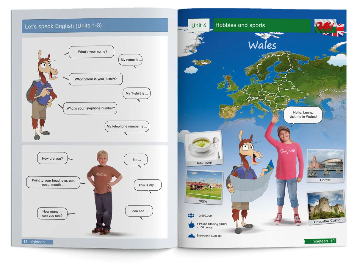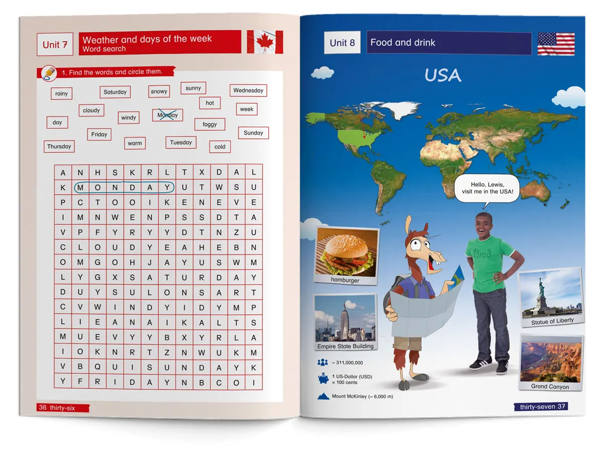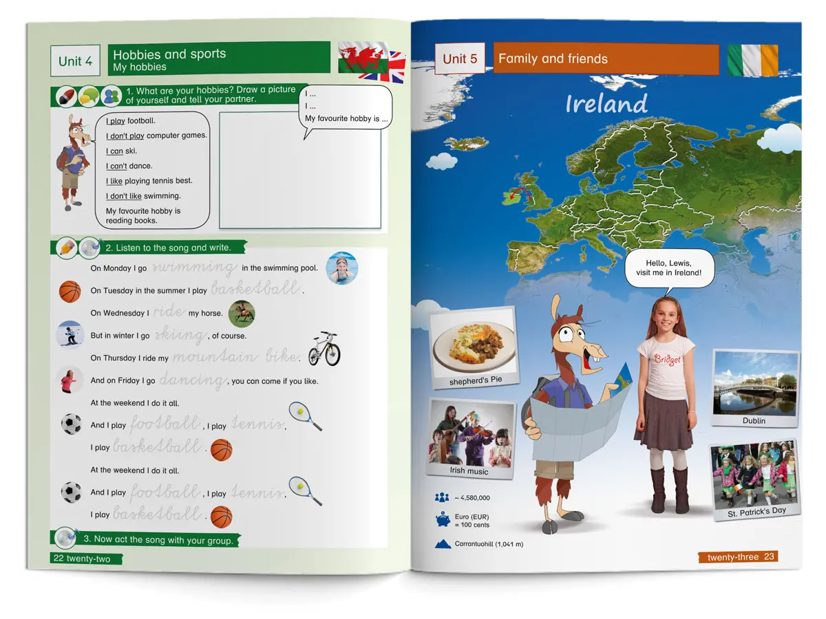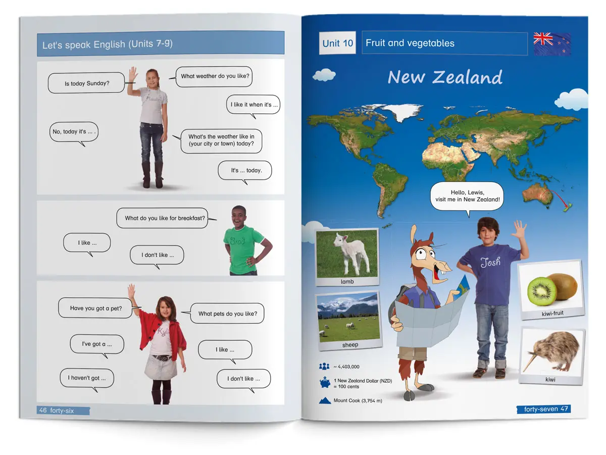 - „Let’s speak English“-Seiten zur Anregung einer Konversation und zum Vertiefen des Gelernten