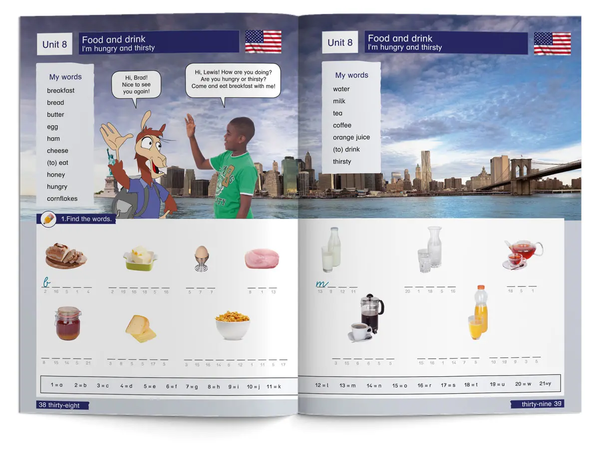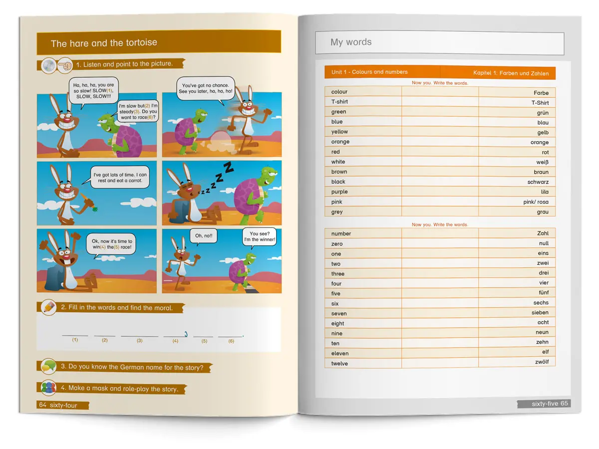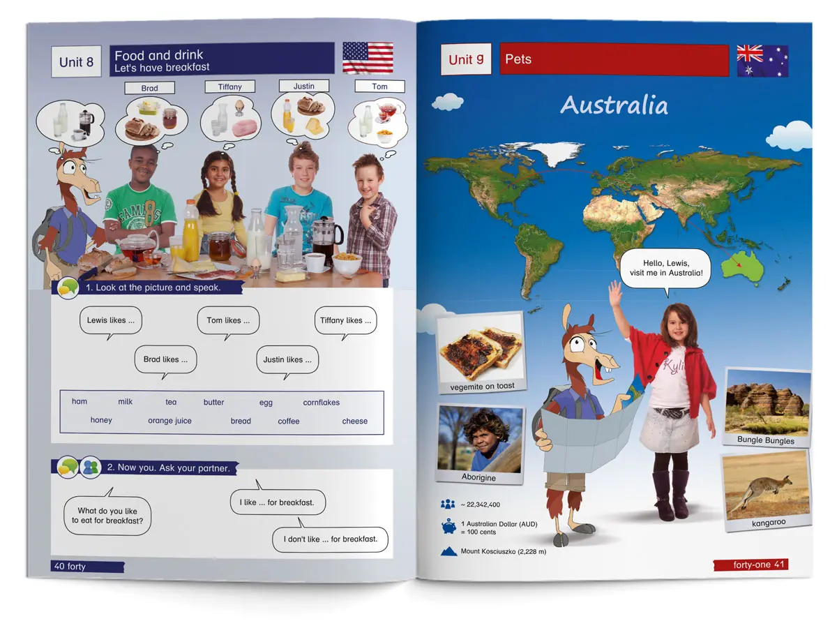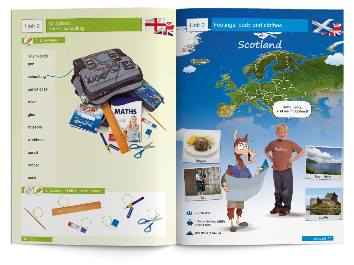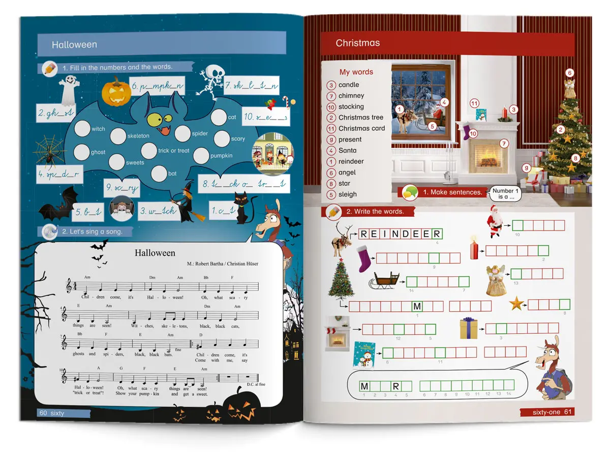 - „Let’s speak English“-Seiten zur Anregung einer Konversation und zum Vertiefen des Gelernten
