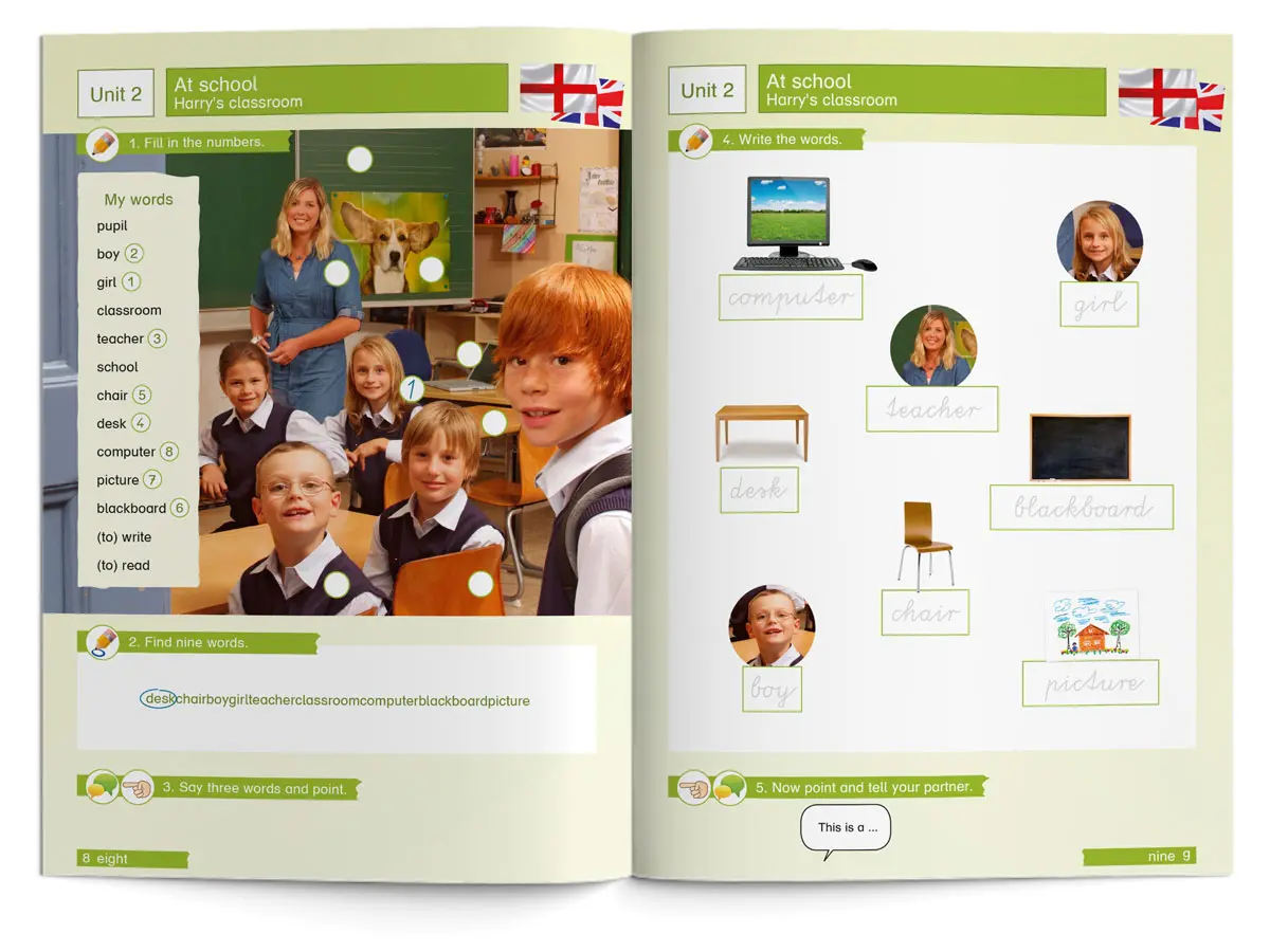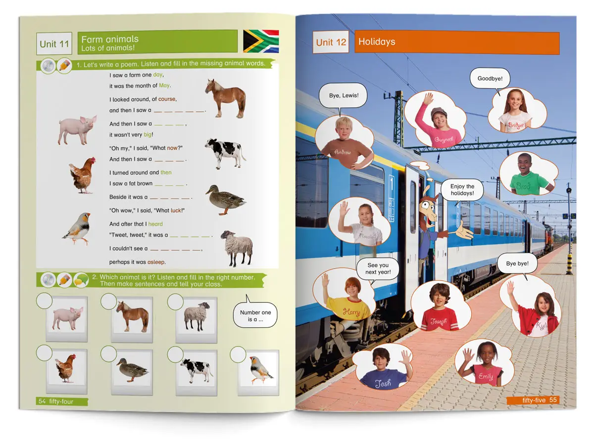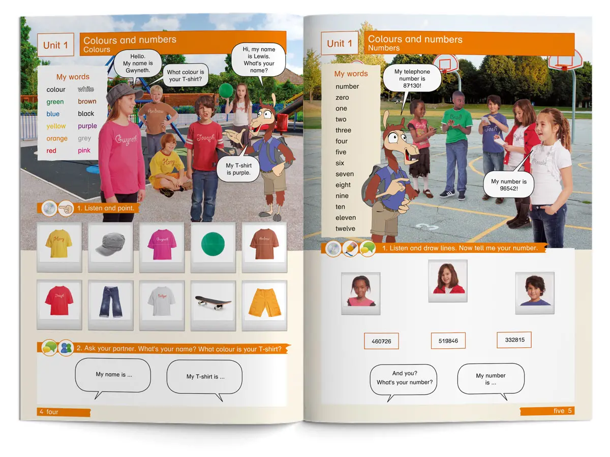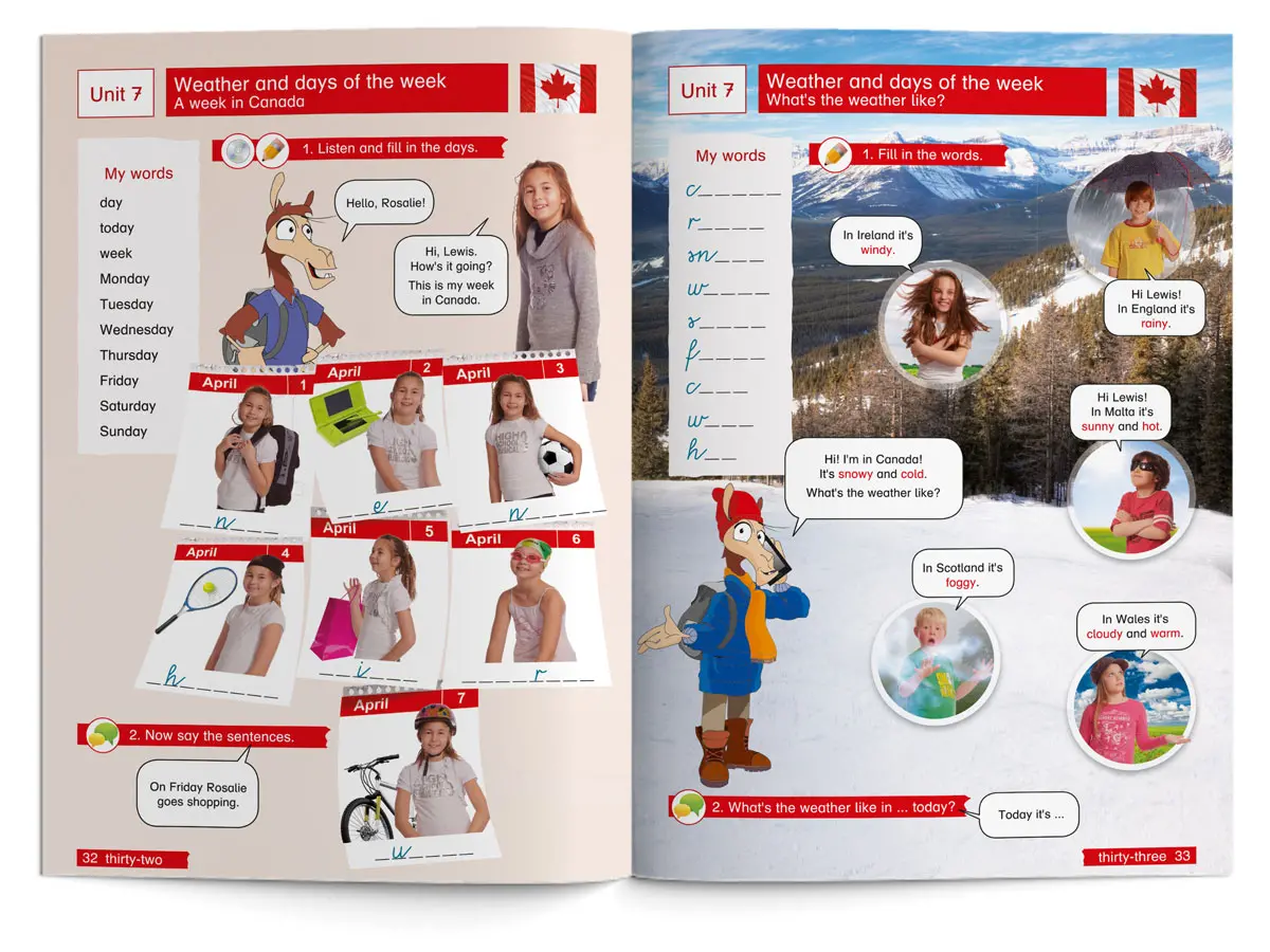 - „Let’s speak English“-Seiten zur Anregung einer Konversation und zum Vertiefen des Gelernten