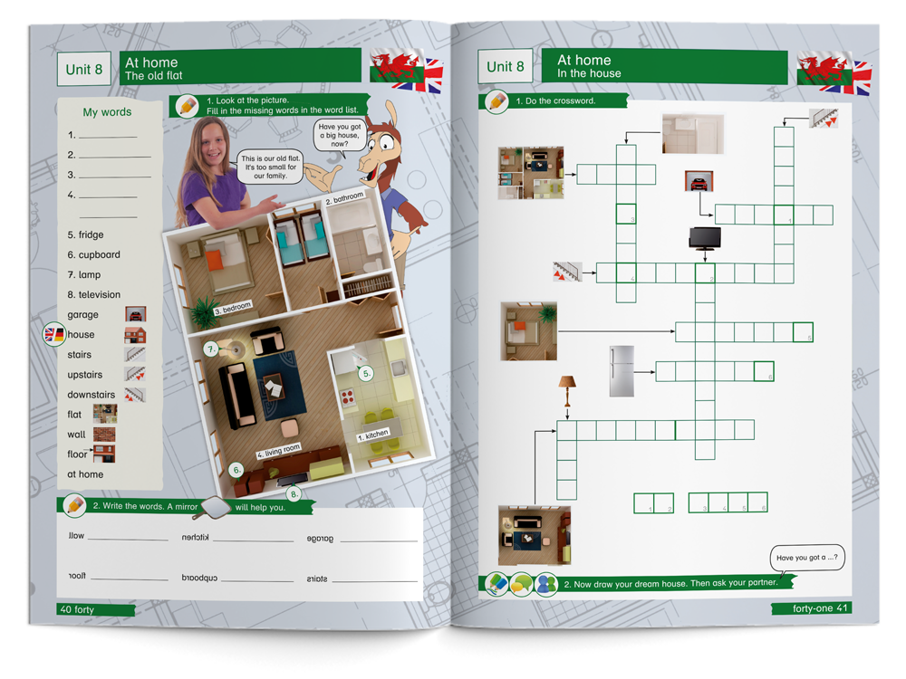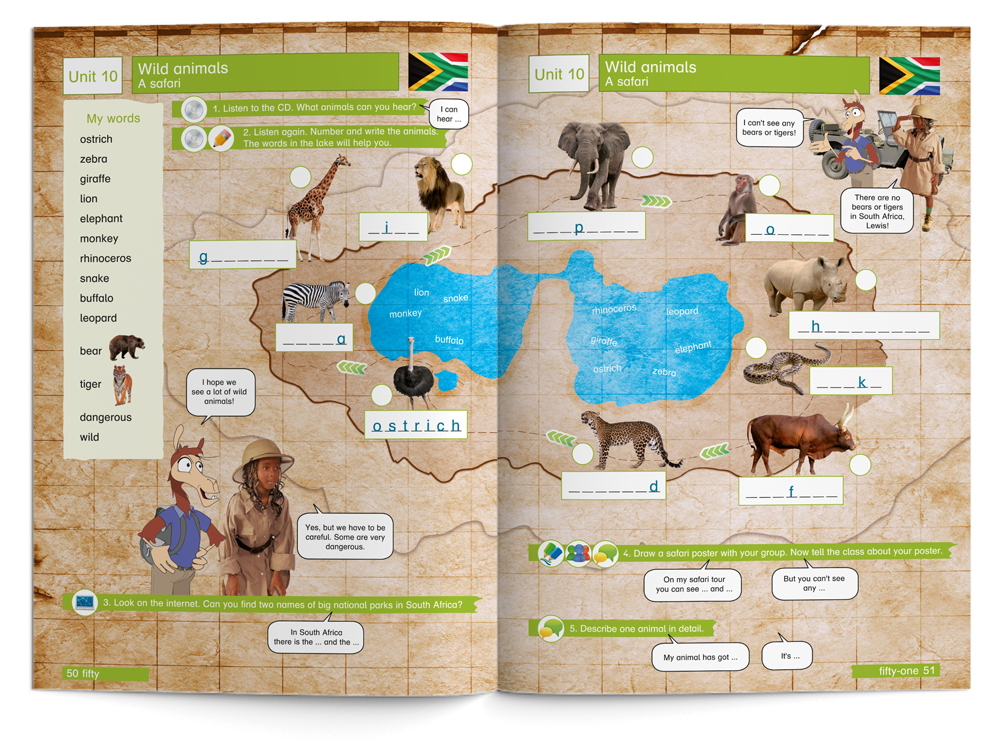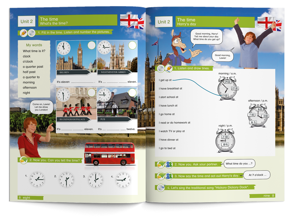 - „Let’s speak English“-Seiten zur Anregung einer Konversation und zum Vertiefen des Gelernten