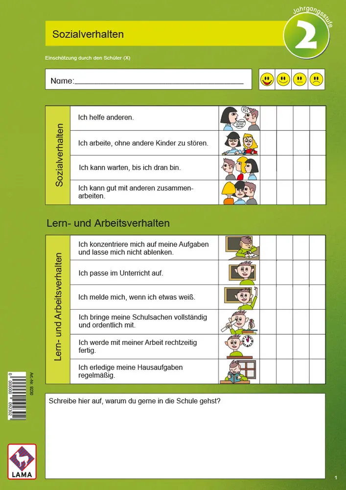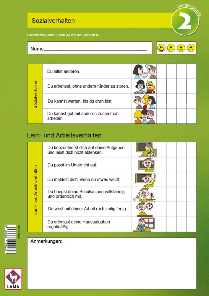 In den Jahrgangsstufen 1 bis 3 sind heute dokumentierte Lernentwicklungsgespräche im Beisein der Kinder gefordert. Mithilfe unserer Einschätzungsbögen gelingt nicht nur die Dokumentation sondern auch die Vorbereitung aller Gesprächspartner auf diese Gespräche spielend leicht. Kindgerechte Illustrationen, einfache Texte und Smileys sorgen dafür, dass auch die Kinder genau verstehen, worum was es geht und motiviert an der Einschätzung mitarbeiten. In angstfreier Atmosphäre können so nicht nur Stärken, sondern auch Schwächen analysiert sowie neue Lernziele und geeignete Maßnahmen festgelegt werden.
