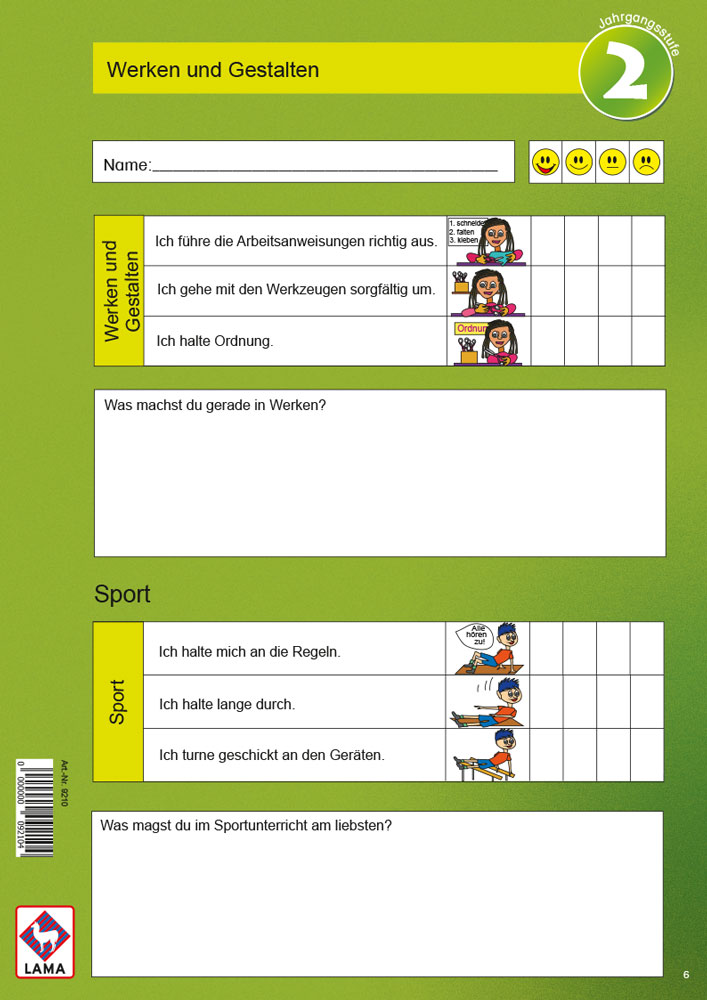 In den Jahrgangsstufen 1 bis 3 sind heute dokumentierte Lernentwicklungsgespräche im Beisein der Kinder gefordert. Mithilfe unserer Einschätzungsbögen gelingt nicht nur die Dokumentation sondern auch die Vorbereitung aller Gesprächspartner auf diese Gespräche spielend leicht. Kindgerechte Illustrationen, einfache Texte und Smilys sorgen dafür, dass auch die Kinder genau verstehen, worum was es geht und motiviert an der Einschätzung mitarbeiten. In angstfreier Atmosphäre können so nicht nur Stärken, sondern auch Schwächen analysiert sowie neue Lernziele und geeignete Maßnahmen festgelegt werden.