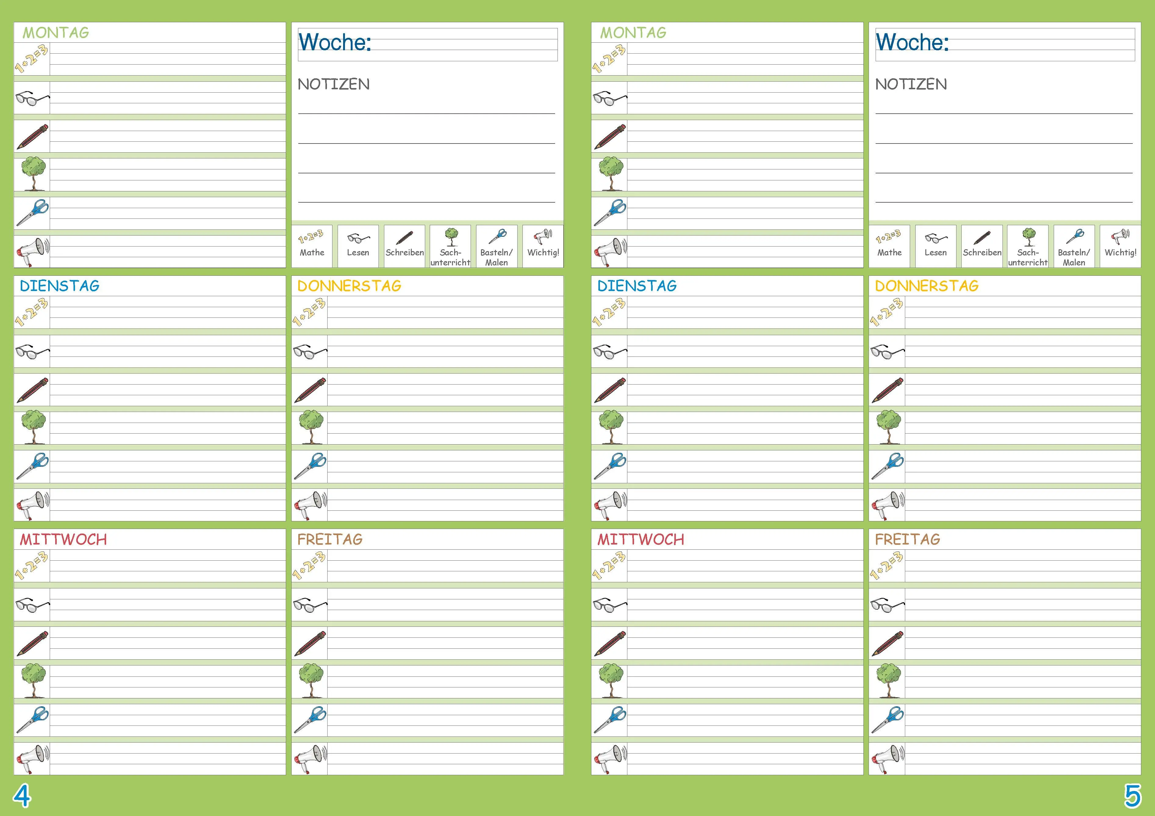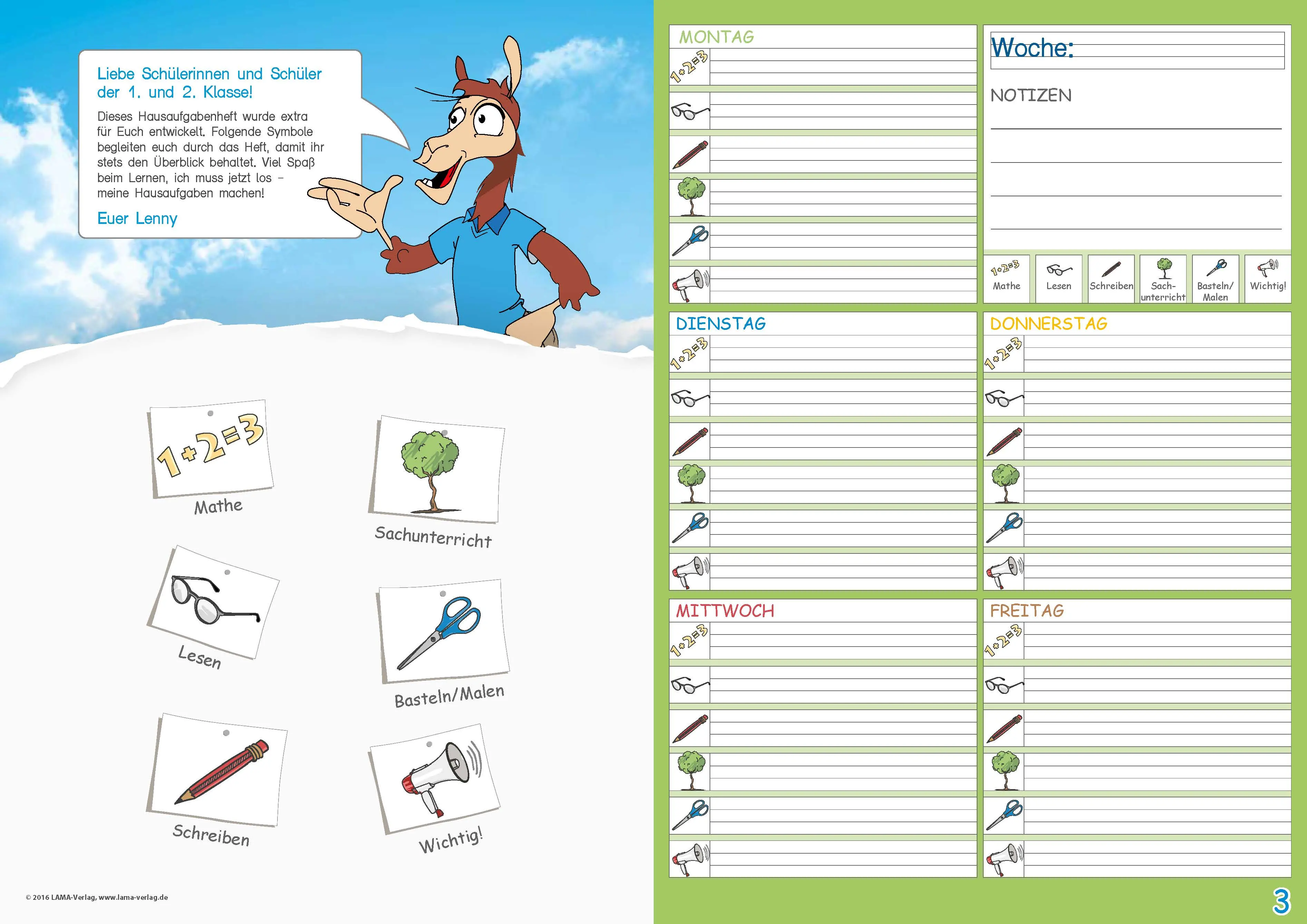 Bereits in der Grundschule lernen die Kinder, sich selbst zu organisieren und alle Aufgaben im Blick zu behalten. Mit unserem kindgerechten und übersichtlich aufgebauten Hausaufgabenheft gelingt genau das. Als ständiger Begleiter des Schuljahres bietet es obendrein Platz für Mitteilungen zwischen Eltern und Lehrkraft. Dank der bunten Symbole für die einzelnen Schulfächer und der farbigen Lineatur finden sich auch Schulanfänger kinderleicht zurecht.