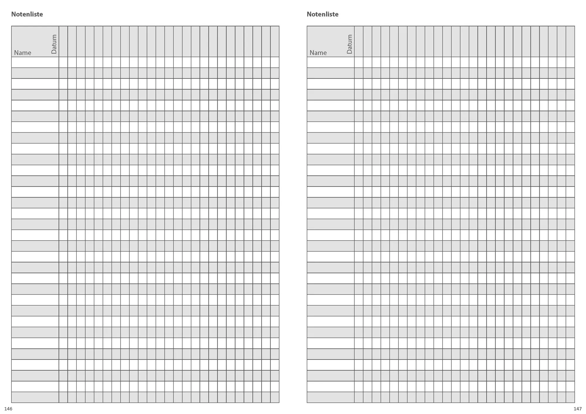 - Notenlisten für jedes Kind auf einer übersichtlichen DIN-A4-Seite